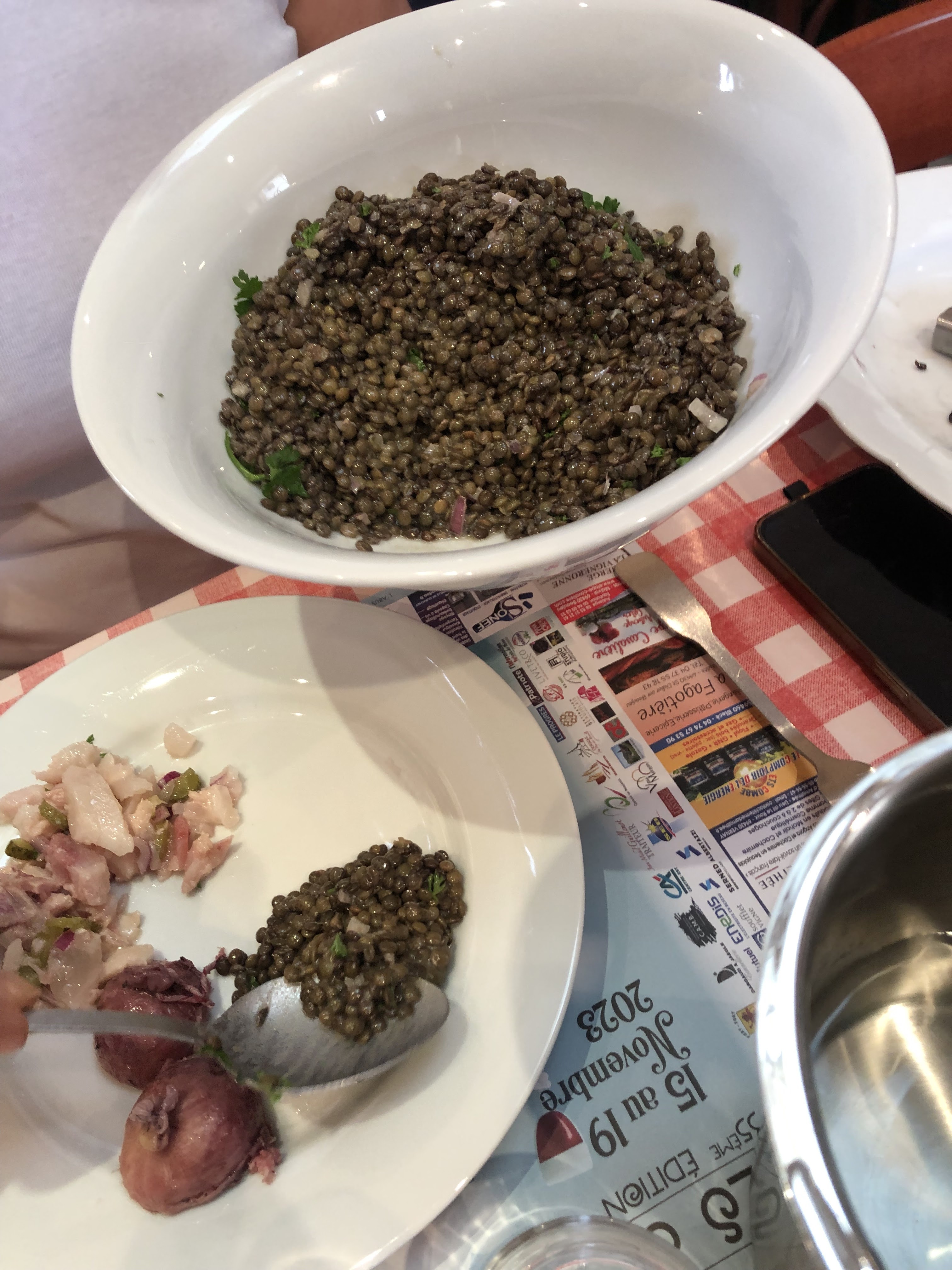 Me rendant dans le Beaujolais je m'attendais à manger une cuisine du terroir, a mon regret j'ai trouvé une cantine scolaire je m'explique lentilles en pot ou en boîte, salade de tomates avec des aubergines 🙈 marinées dans le vinaigre, du choux rouge a la crème et non pas de blague de surcroît plat chaud 😓😭😭, bref je ne vous explique pas la fin(aim) 🤣🤣🤣une catastrophe 🤮a oublier.