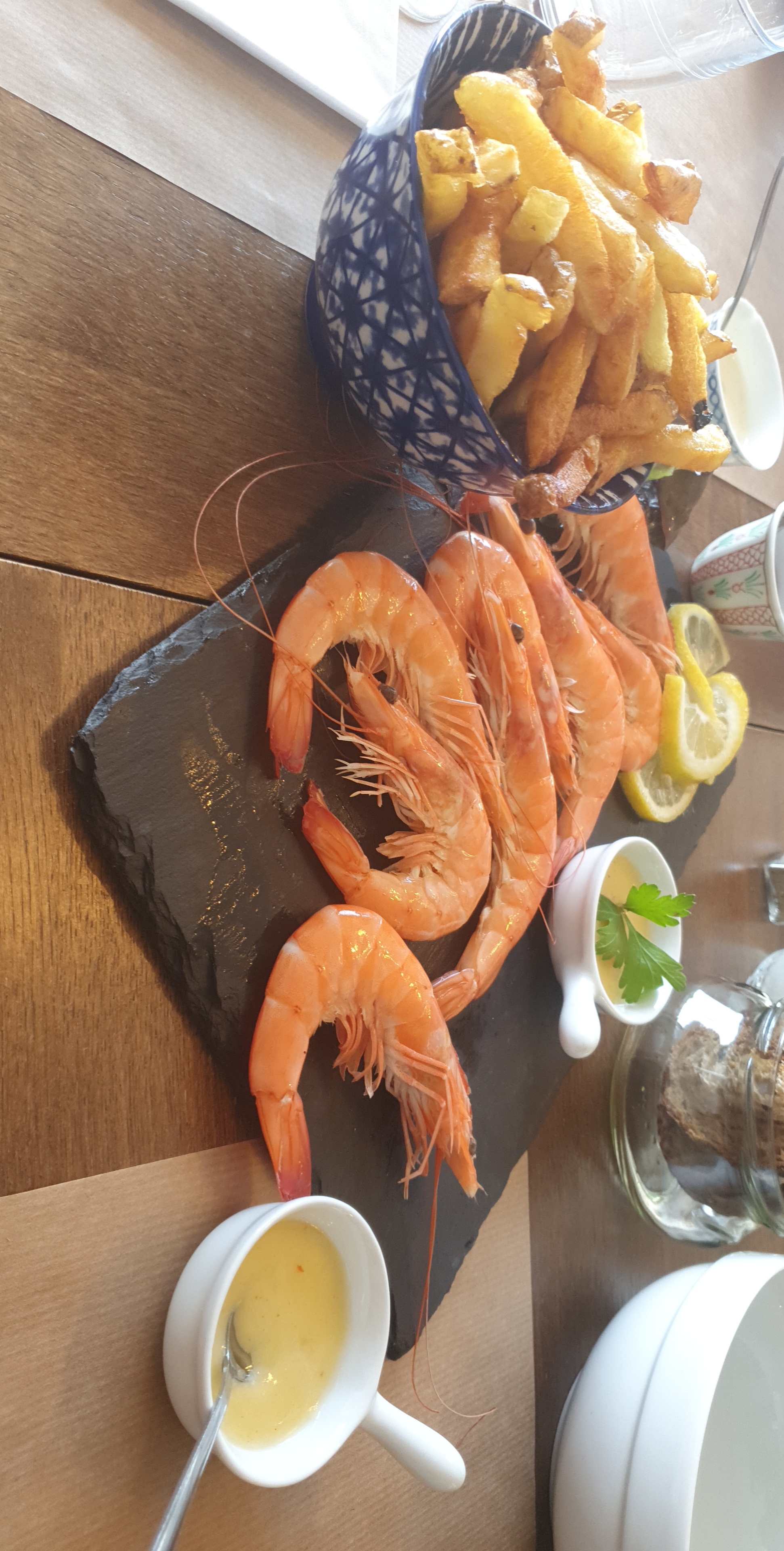 Très bonne accueil, j'ai pris une moule Normande que j'ai adoré, moi qui ne jure d'habitude que par les moules marinières. Leur salade du jour était délicieuse avec de bon produits. assaisonnement a la moutarde ancienne était très bon. Seul bémol: l'assiette de crevette qui méritait une note 3,5/5. J'y retournerai.