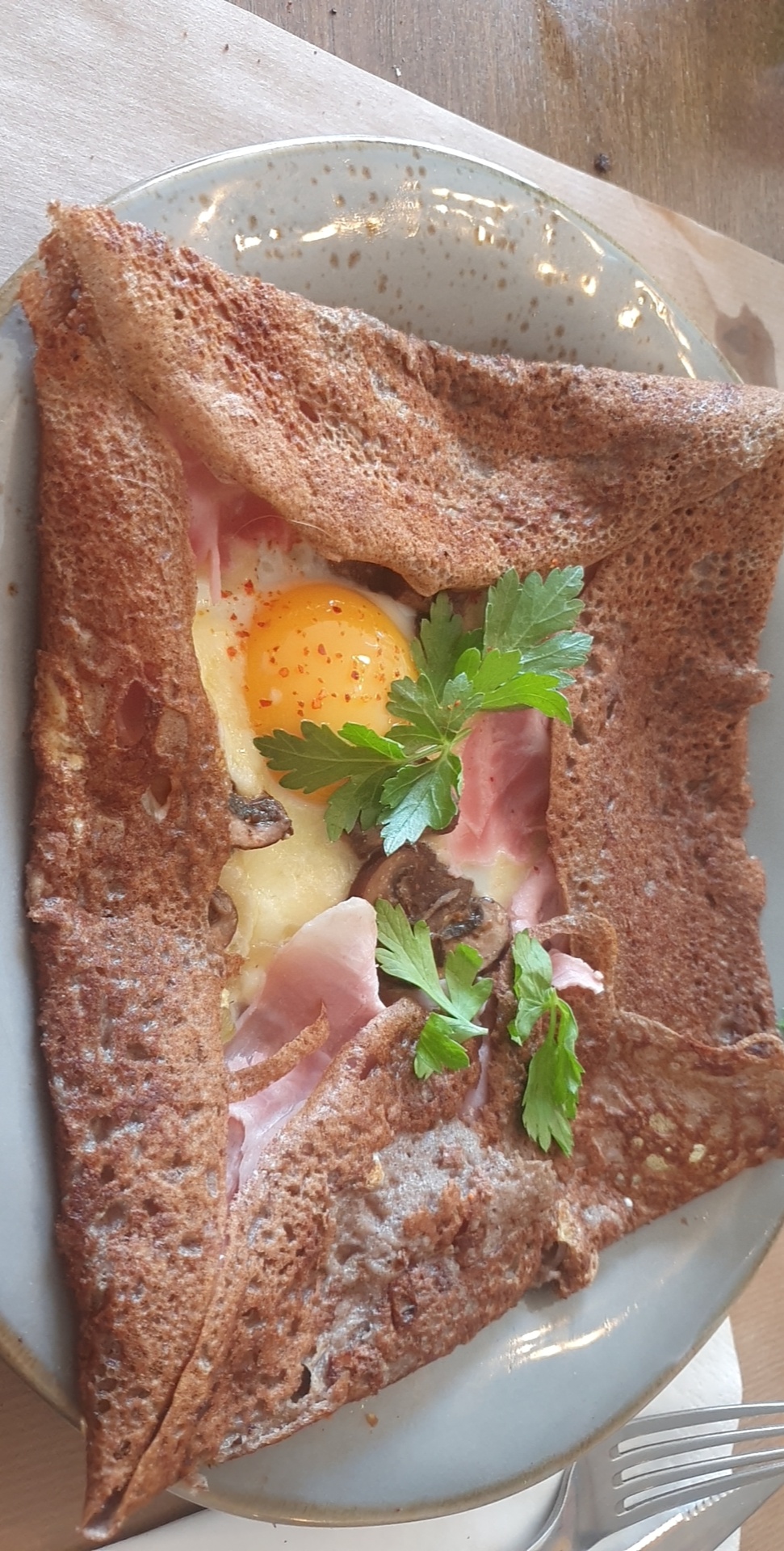 En escale à vélo à Yport, on cherche de quoi se ravitailler, on opte pour une crêpe complète...et surprise on tombe sur une sympathique équipe et une crêpe complète qui dépote, les oignons marinés et le piment d’espelette transforme la « simple » crêpe en un sacré bon moment pour nos papilles! On vous souhaite le meilleur pour ce démarrage qui part bien !