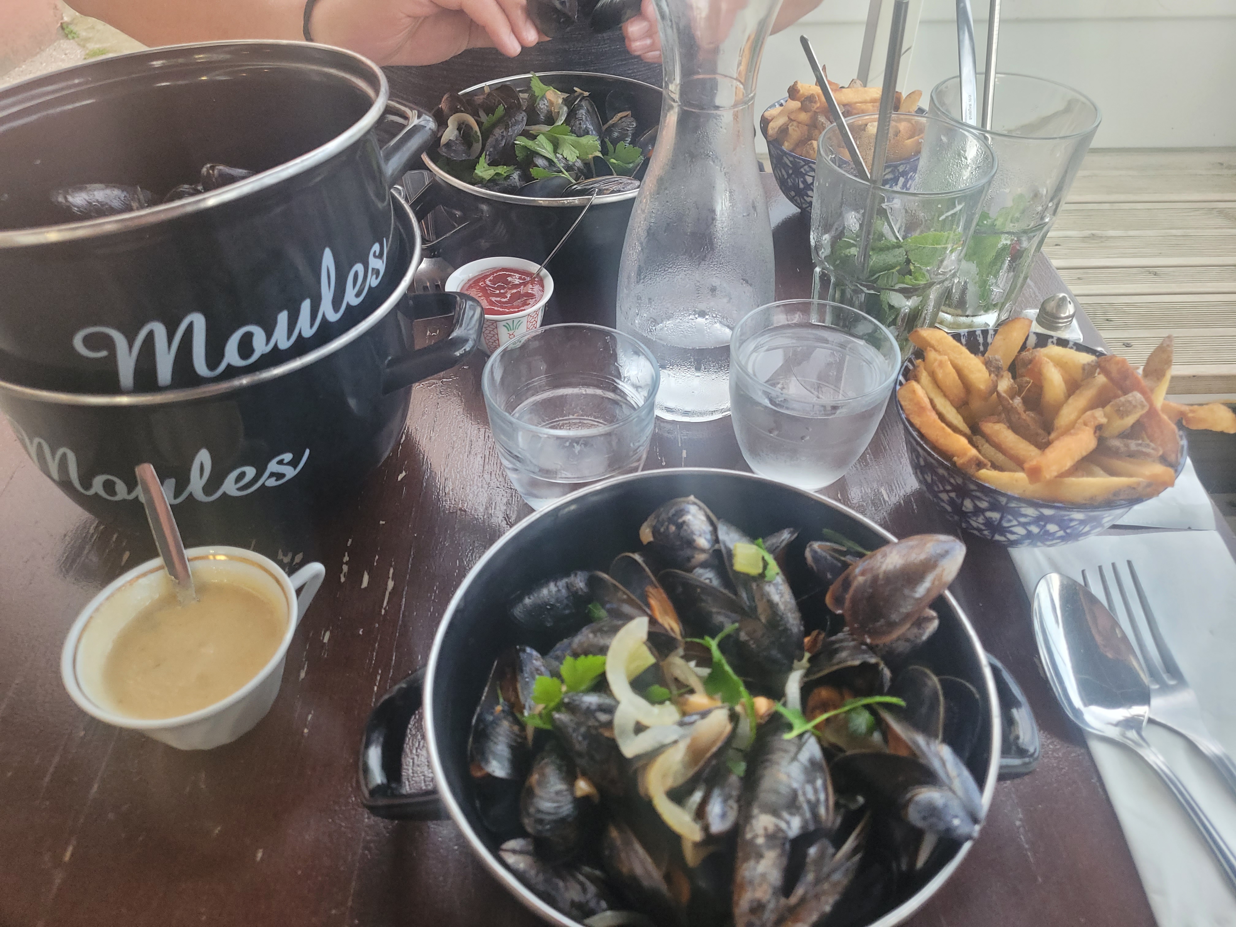 Petit restaurant un peu caché Belle vue et terrasse confortable Très bonnes moules Crêpe garnie