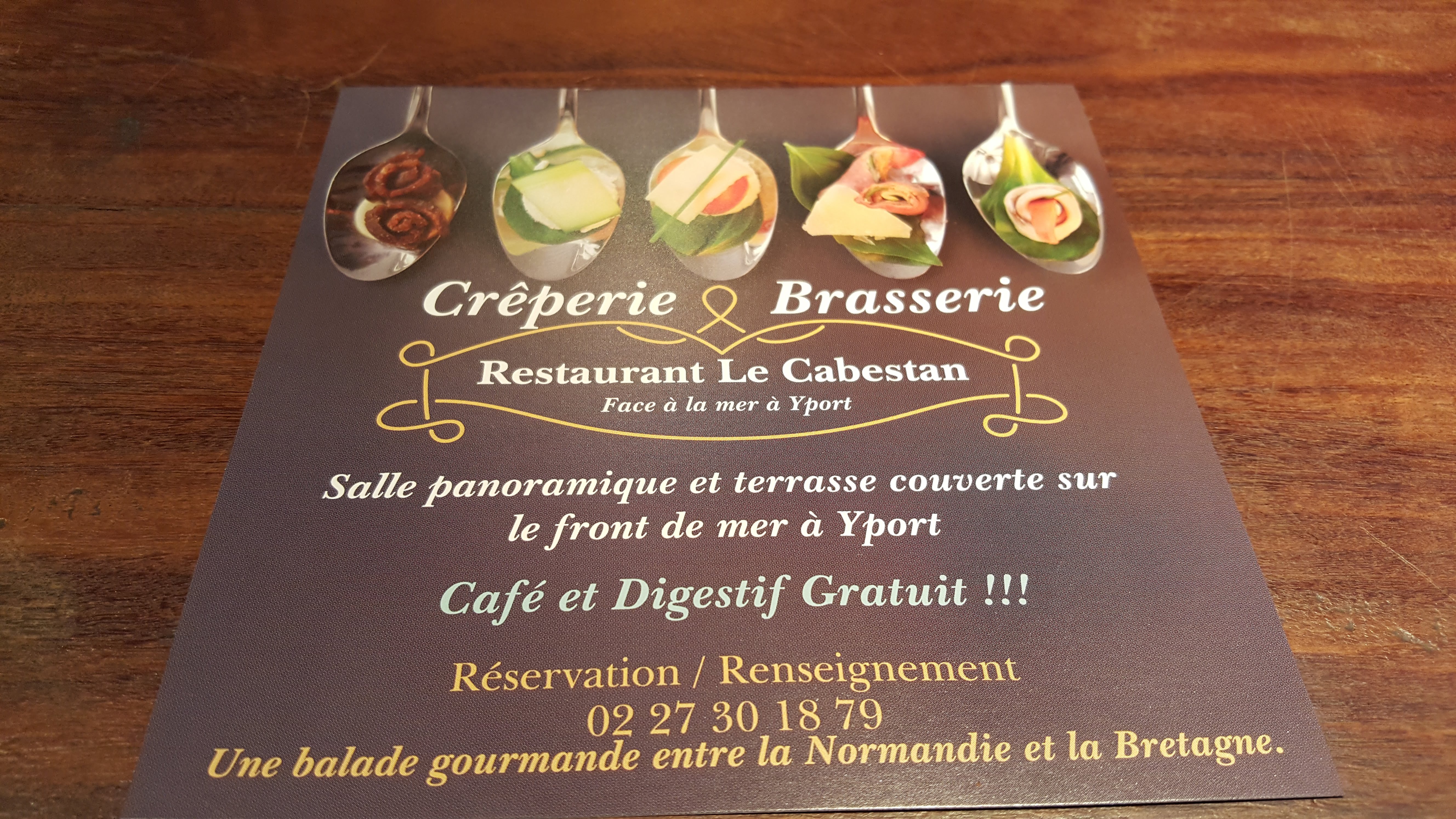 Lors d'une halte à Yport nous (couple) avons choisi de déjeuner au resto Le cabestan et nous ne regrettons pas notre choix. Reçu avec amabilité par le patron nous avons été installé à l''étage avec vue sur mer pour notre plus grand bonheur. Un service simple mais appliqué assuré par une serveuse dynamique, souriante et affable. Les plats commandés ( 1 Petite planche apéro, 2 galettes savoyardes, 1 crêpe plume, 1 glace normande) étaitent conformes à notre attente et nous avons apprécié la saveur des produits proposés, le tout pour un prix raisonné. Une adresse à connaitre.