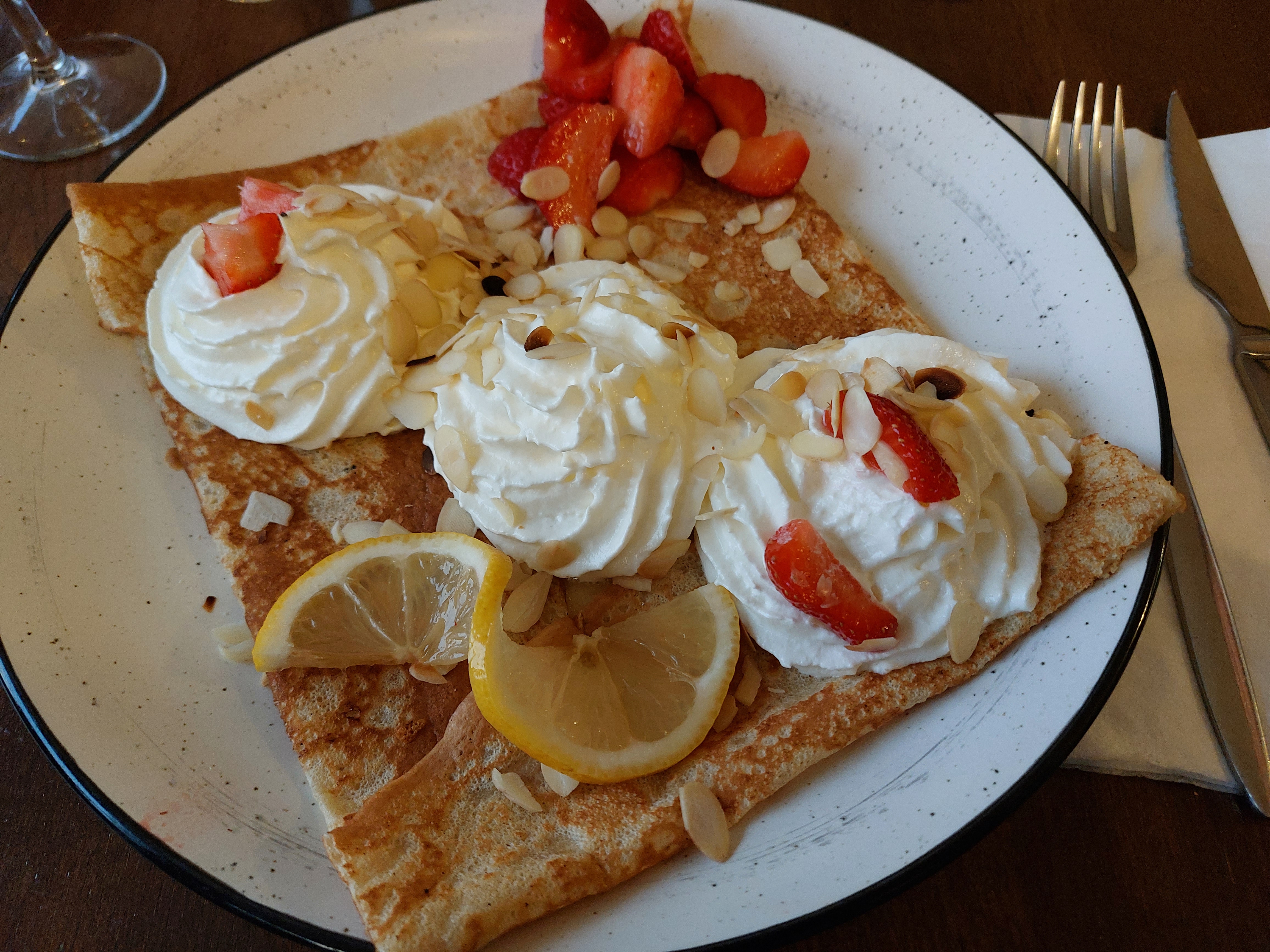 Petite pose déjeuner pendant la visite d'yport ! Tres bonne surprise pour cette crêperie dans laquelle nous avons très bien mangé ! Celle au saumon très bien fournie en saumon et celle à la sauce Benedictine, un régal ! Sauce crémeuse et onctueuse avec le goût de la benedictine bien présente ! Les deux crêpes sucrées, bonne aussi ! Et le service rien à dire....... Avec le petit plus de la vue sur la mer !