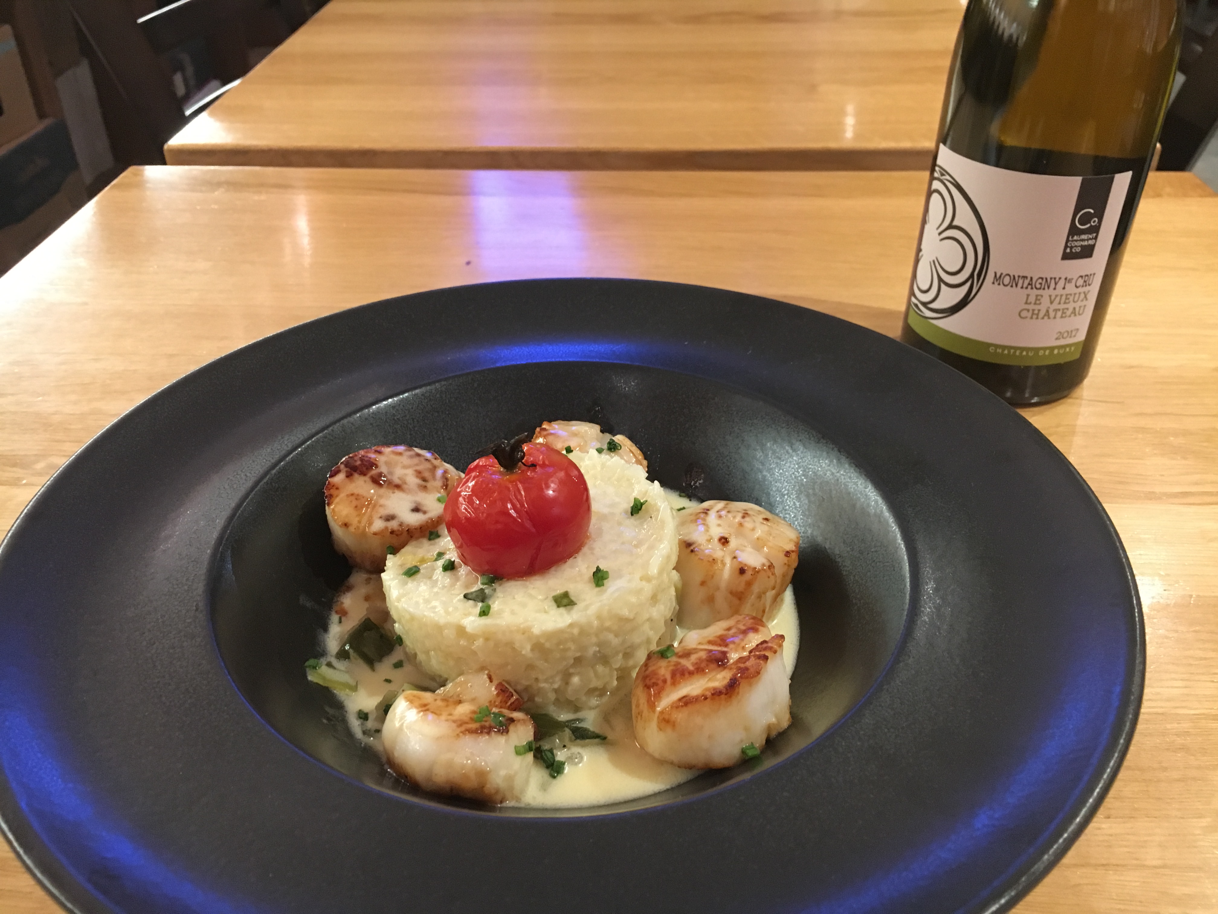 Merci pour ce moment …..face à Lameloise tu vois ce bar à vin, tu pousses la porte et tu tombes sur un endroit plein de gens heureux, et ils se sont arrangés pour nous proposer la petite table devant la cuisine. Une jolie affaire familiale avec une équipe ou tout le monde dit « bonjour » te demande « est ce que tout va bien ? » bref du bonheur de relations humaines Nous étions juste en transit et donc on a pris une planche mixte et….belle prestation avec des produits goûteux, une bouteille de Rully 1er cru au juste prix », et en voyant les belles assiettes simples et gourmandes passées avec de magnifiques frites maison on a craqué Bref une adresse sympa comme l’équipe et une prestation avec un très bon rapport qualité prix Et si je devais avoir un souhait ? Une offre de pain plus traditionnelle et la on tutoierait les étoiles
