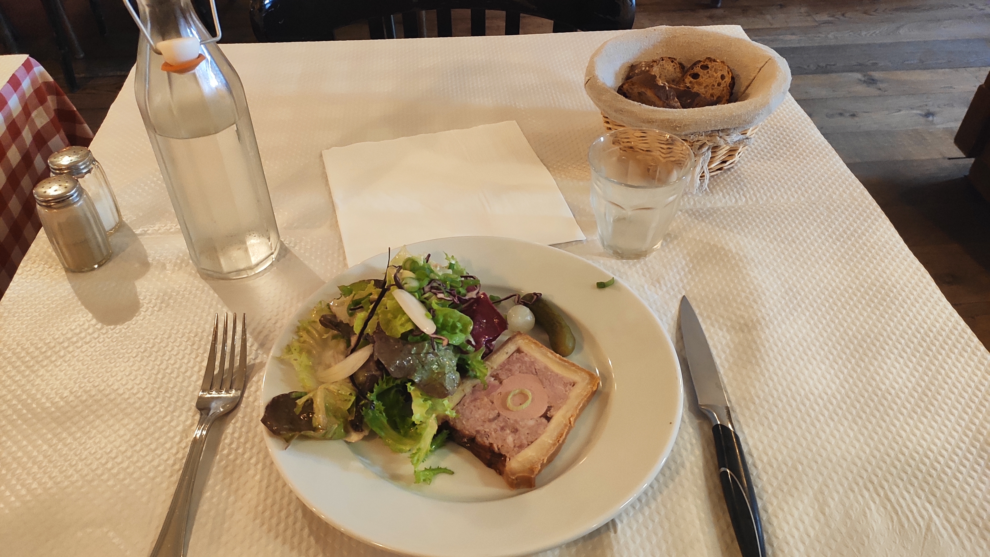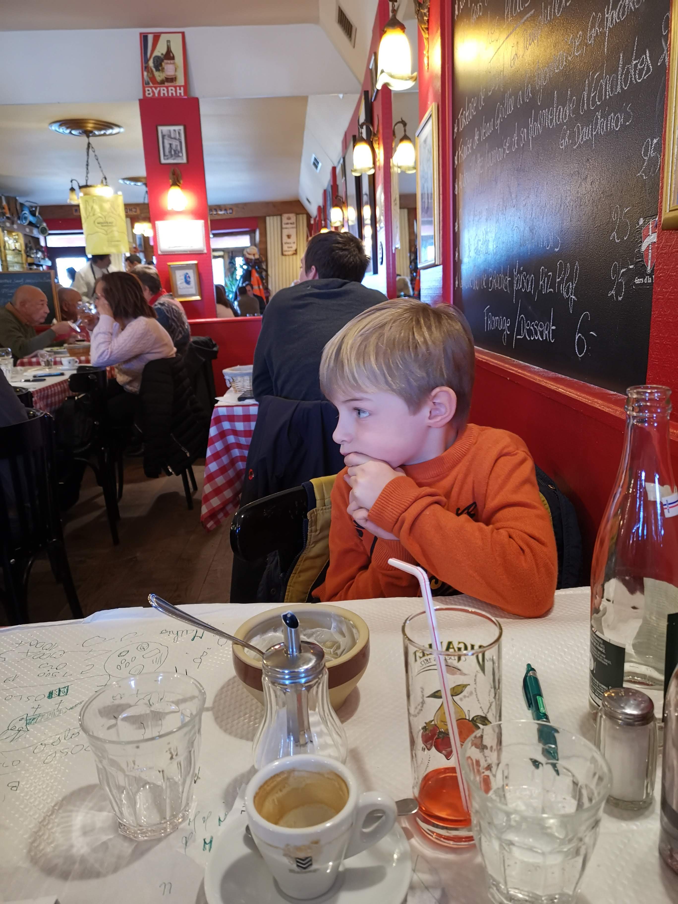 Ambiance bouchon où on mange a sa faim pour un prix raisonnable...vin compris, vive la France !