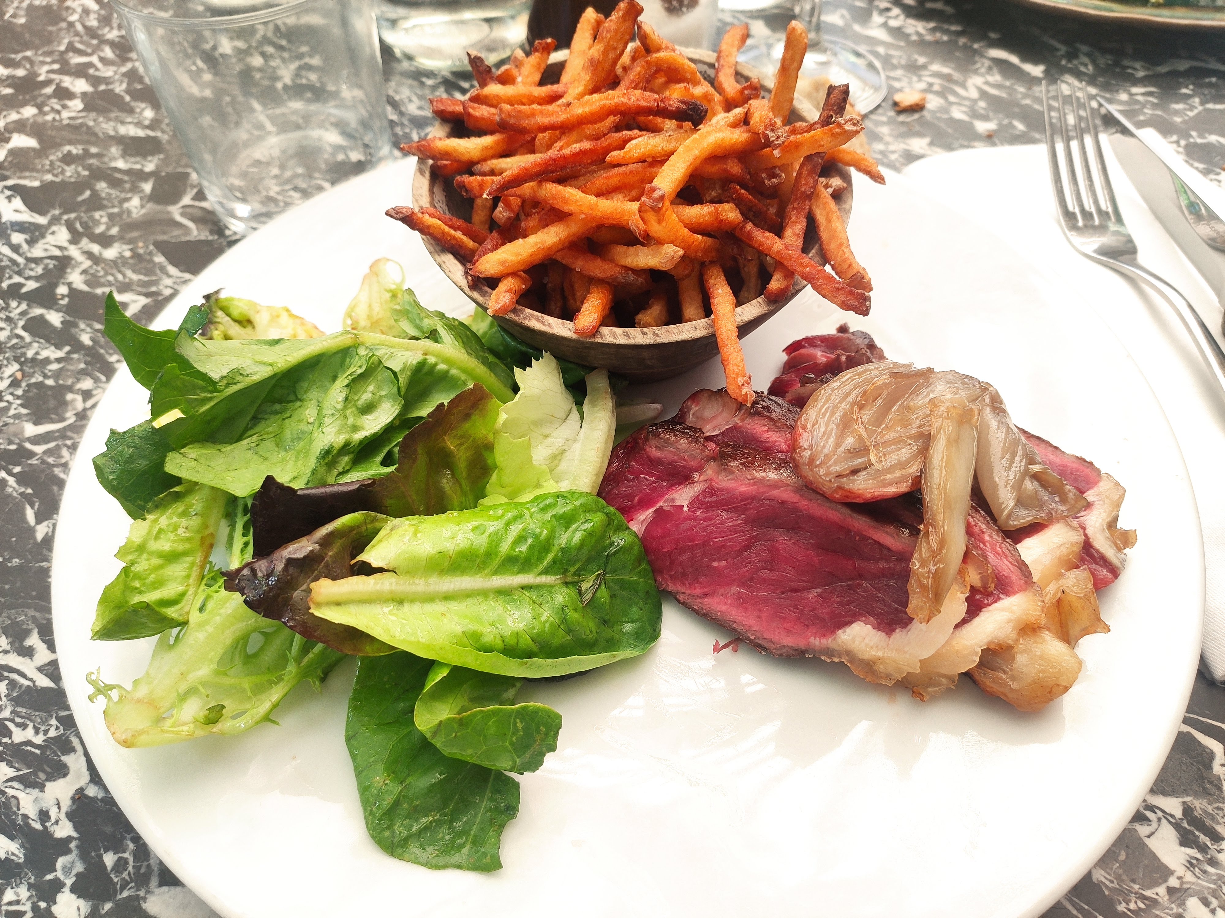 Voici l'exemple typique du restaurant à éviter. Le service est désorganisé, lent, les plats moyennement cuisinés (avec des produits de qualité, au demeurant). Quel dommage! Le cadre est agréable. J'y suis allé deux fois et la dernière fois il m'est arrivé la chose suivante: je demande un steak à point, on me sert un steak cru et froid à l'intérieur. Après réclamation, le serveur vient m'expliquer que ça se mange comme ça et il a fallu beaucoup insister pour que l'on complète la cuisson. L'assiette est revenue avec l'accompagnement en vrac et froid. Pas la peine d'insister! L'addition (50-100€/personne), en revanche est digne d'un restaurant étoilé (ça tombe bien, il y en a un pas loin!!!). Il semblerait que la formule du midi soit d'un bien meilleur rapport qualité/prix et justifie nombre d'avis positifs. (ma dernière visite date de 2016)