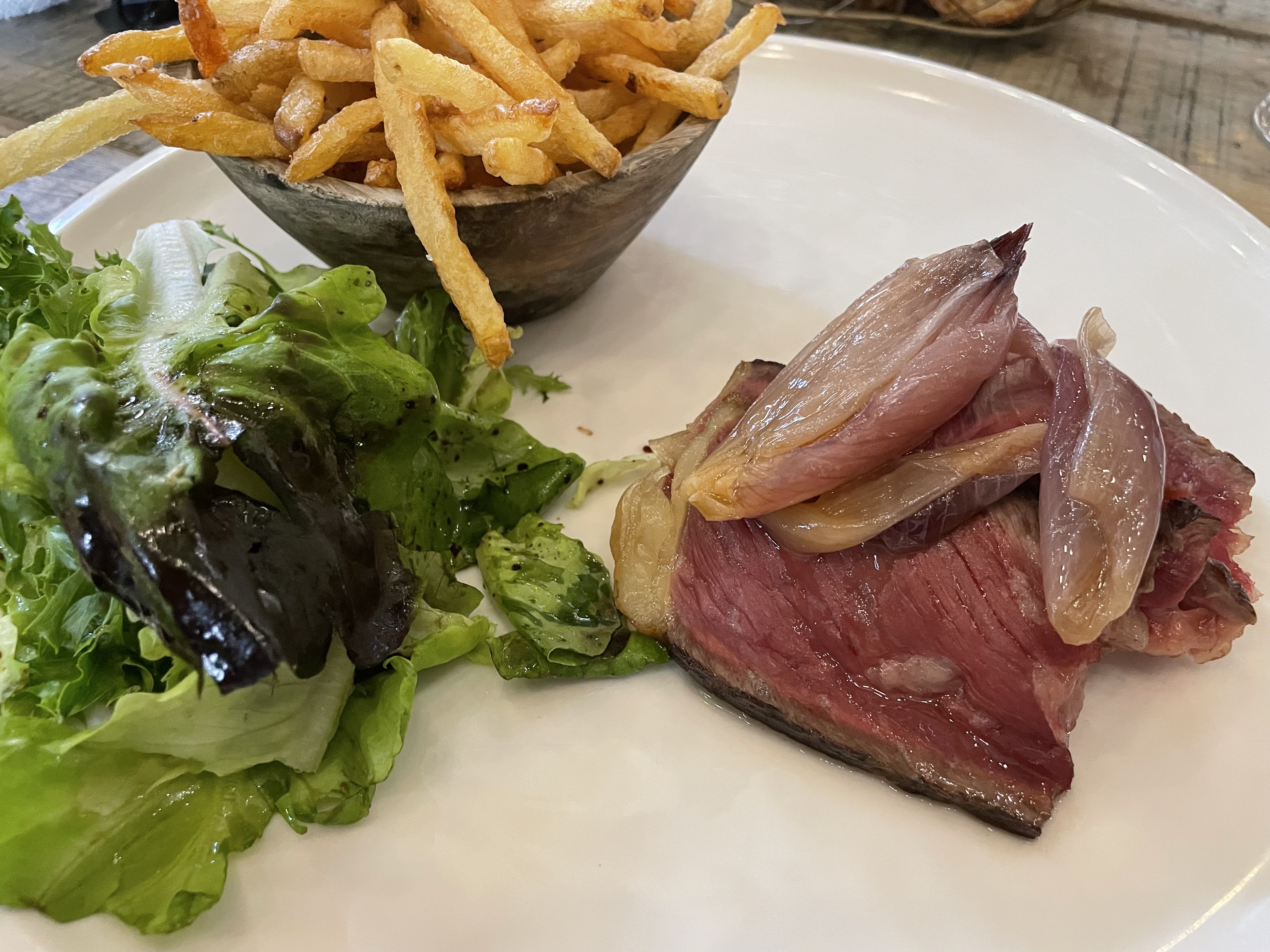 Un cadre atypique qui confère la sensation de ne pas être dans un restaurant mais chez soi ( — notre papa a adoré le canapé — ) Produits au top , une cote de bœuf excellente et copieuse. Un service et une prestation irréprochable , conseils avisés et sourires continus , un merci particulièrement à Mathilda pour sa bienveillance ( et sa patience ) ! Je recommande fortement , nous reviendrons !