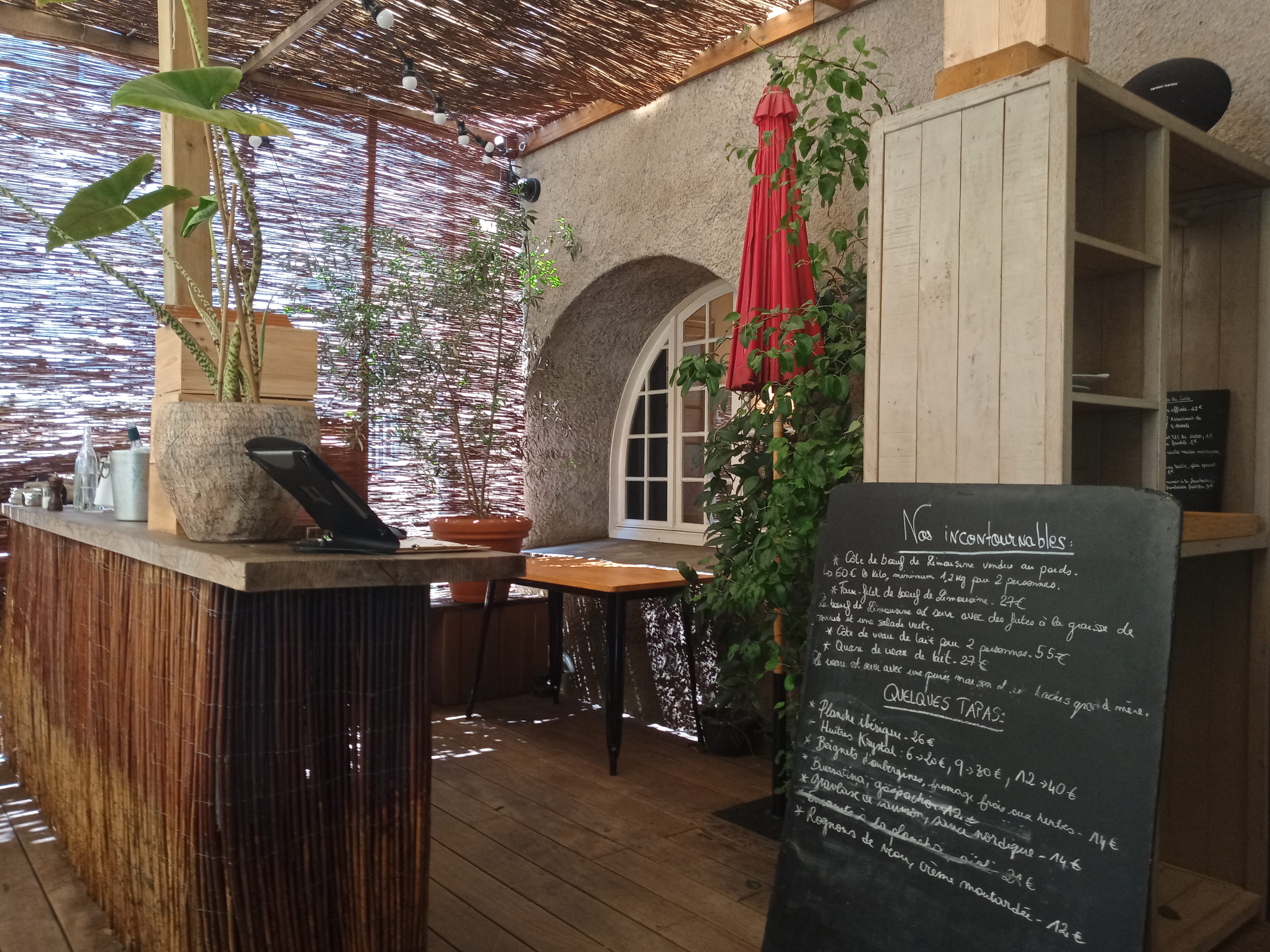 Nous avons pu diner en famille ( ils possèdent une chaise haute) , terrasse super agréable , ombragée ( avec moustique, nous avions pris notre anti moustique par anticipation :) ) , déco sympa, grande table. Rapport qualité prix assez élevé mais ça en valait le coup ! Viande de bonne qualité, frites maison , poisson super bien préparé, purée maison, ils ont su s'adapter pour notre jeune fils et faire une assiette de purée seulement. Service au top , c'est agréable de manger dans ce restaurant. Nous reviendrons sans hésiter. Nous avons aussi été conseillé pour le vin et c'était plutôt bien conseillé.