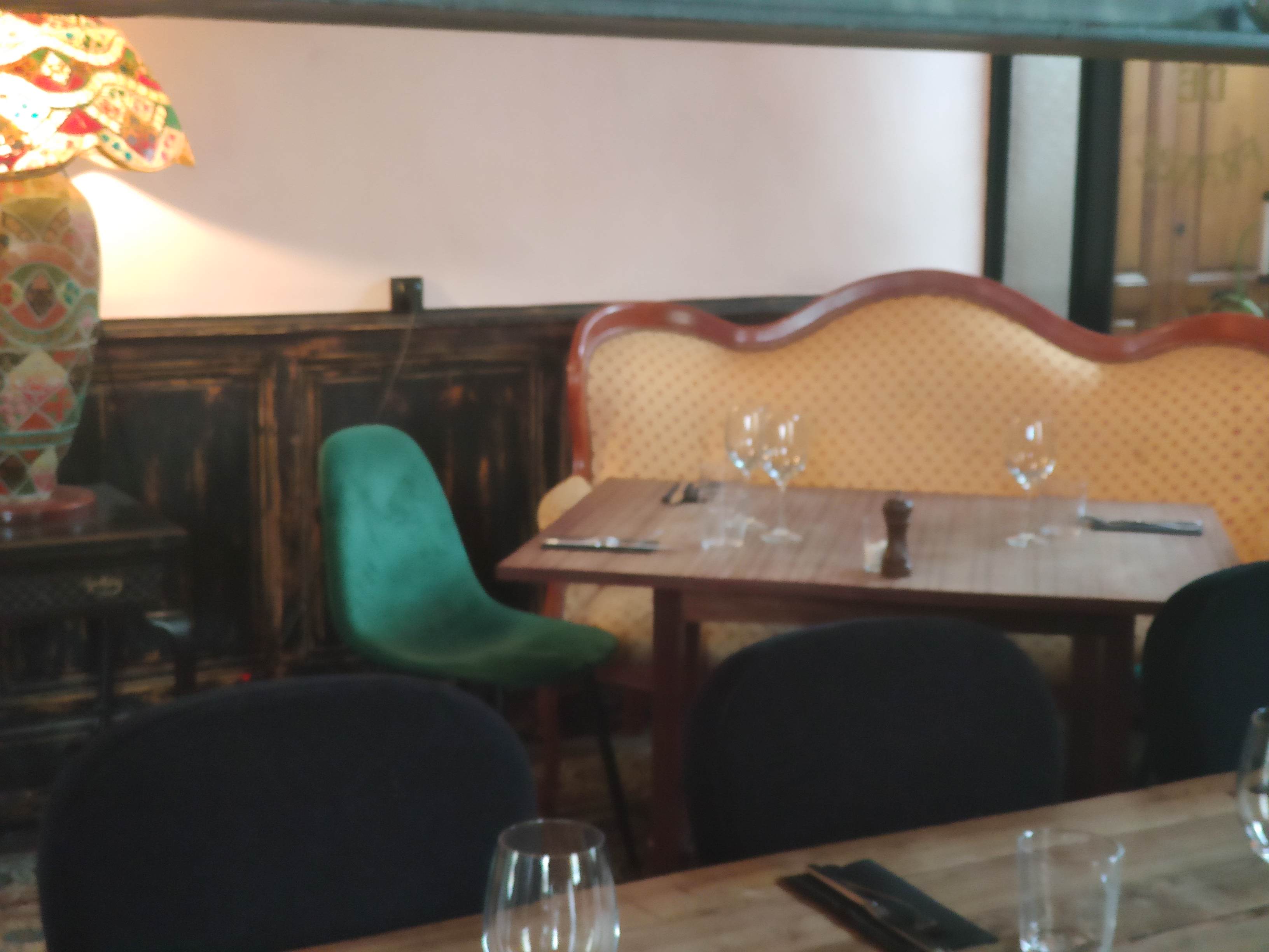 Excellente surprise. Ambiance très cosy avec cheminée centrale et un patchwork de mobiliers chinés a droite à gauche qui donnent une vraie convivialité très chaleureuse. Les plats sont très élaborés avec des mélanges de saveurs particulièrement réussis. Une belle carte des vins également du prix abordable au plus élevé. Nous recommandons absolument.
