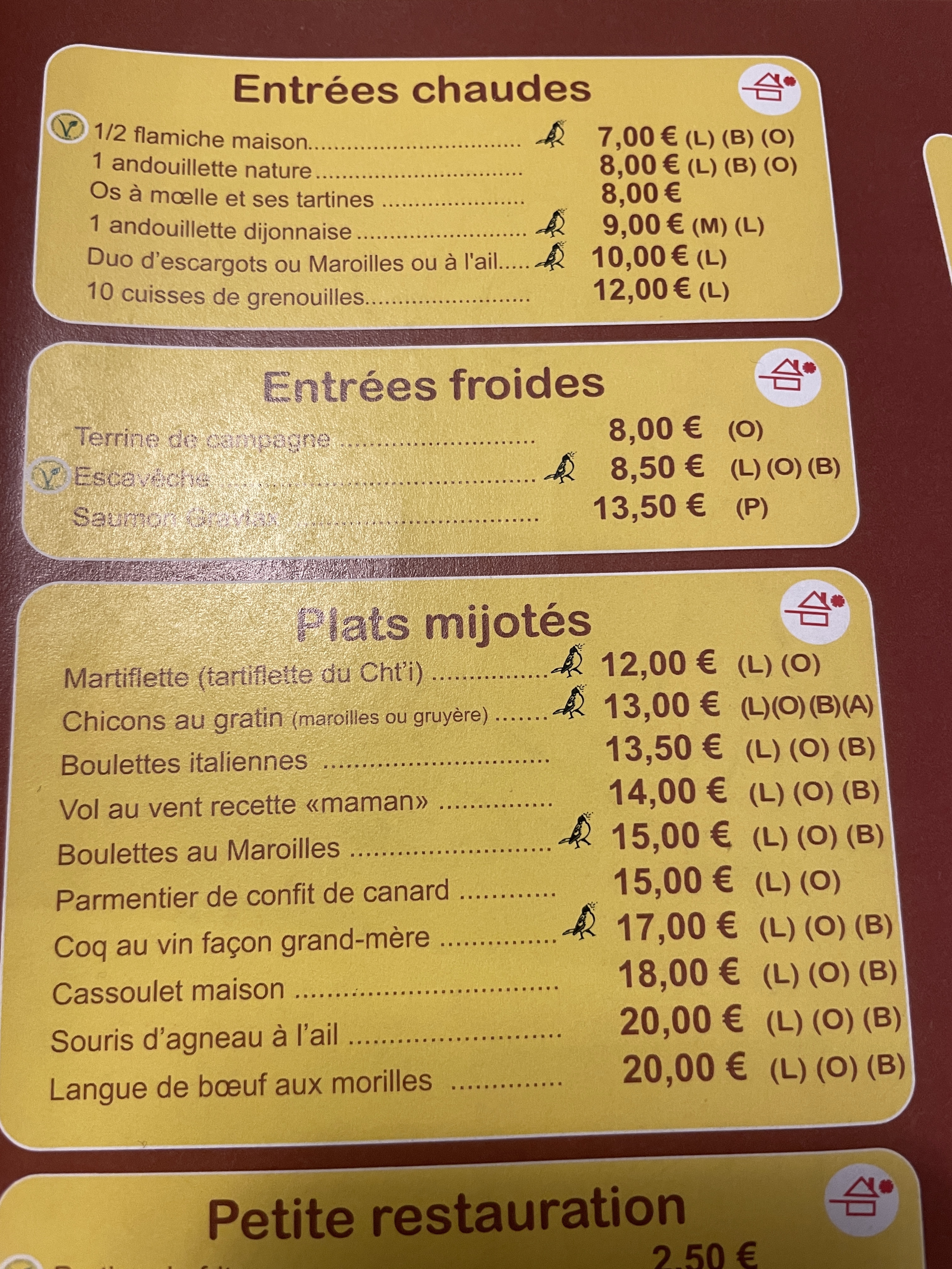 Posté le 29/10/2022 à 06:42"Comment vous expliquer en quelques mots la valeur d’un Temple, d’un monument ? D’aussi loin que je me souvienne cet endroit situé au milieu de nulle part est un lieu de rendez-vous pour les initiés. Personne ne vient la par hasard. C’est la route qui veut ça. Mai aussi une certaine dose de rébellion, ceux qui viennent ici sont indépendants d’esprit. Ils veulent du vrai, de l’authentique véritable, du terroir, du local. La pâte de la flamiche est montée par la mère de Richard le patron. Genre pour le fake vous repasserez un peu plus tard hein. Les escargots au maroilles sont une merveille. La langue de bœuf aux morilles est juste merveilleuse de moelleux. Vous ne pouvez pas passer à côté de la Martiflette, la tartiflette du ch’ti. Finissez vous a coups d’Escaveche et de cuisses de grenouilles pour que le bonheur soit complet. Ne le dites à personne mais le patron est le représentant du monastère de la Chartreuse, ce qui signifie qu’ici il y a encore de la VEP au verre à un prix abordable ! Bref, si je le pouvais je viendrai habiter ici définitivement tellement j’aime ce lieu. Quel bonheur !"