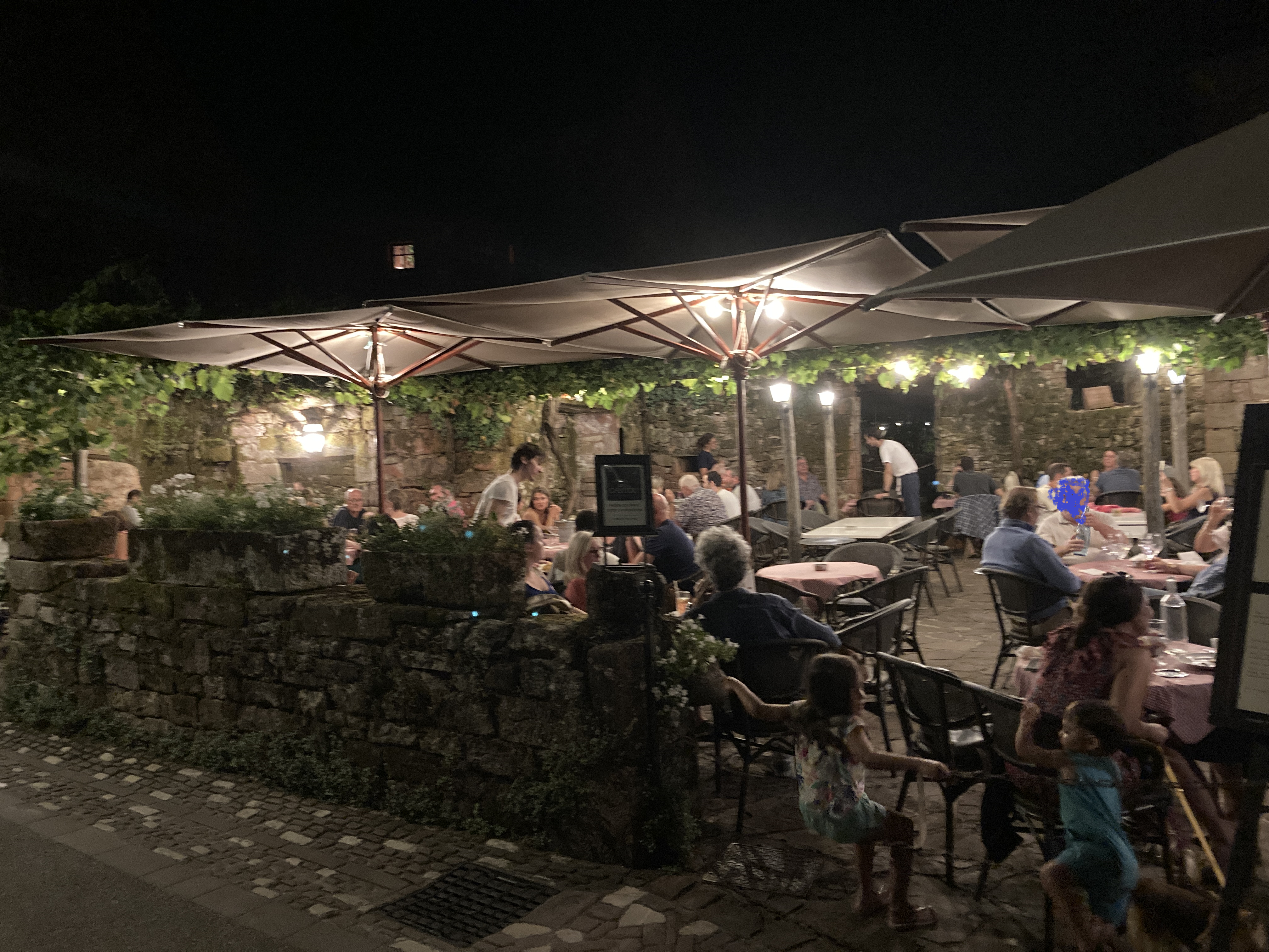 Un lieu très agréable, notamment à la belle saison. Vous êtes entourés de belles pierres sous une treille. Très bon rapport qualité prix et un service impeccable. Il faut réserver. Deux services le soir, un vers 19h15 et un autre vers20h30 si mes souvenirs sont exacts... Comptez moins de 30€ sans les vins.
