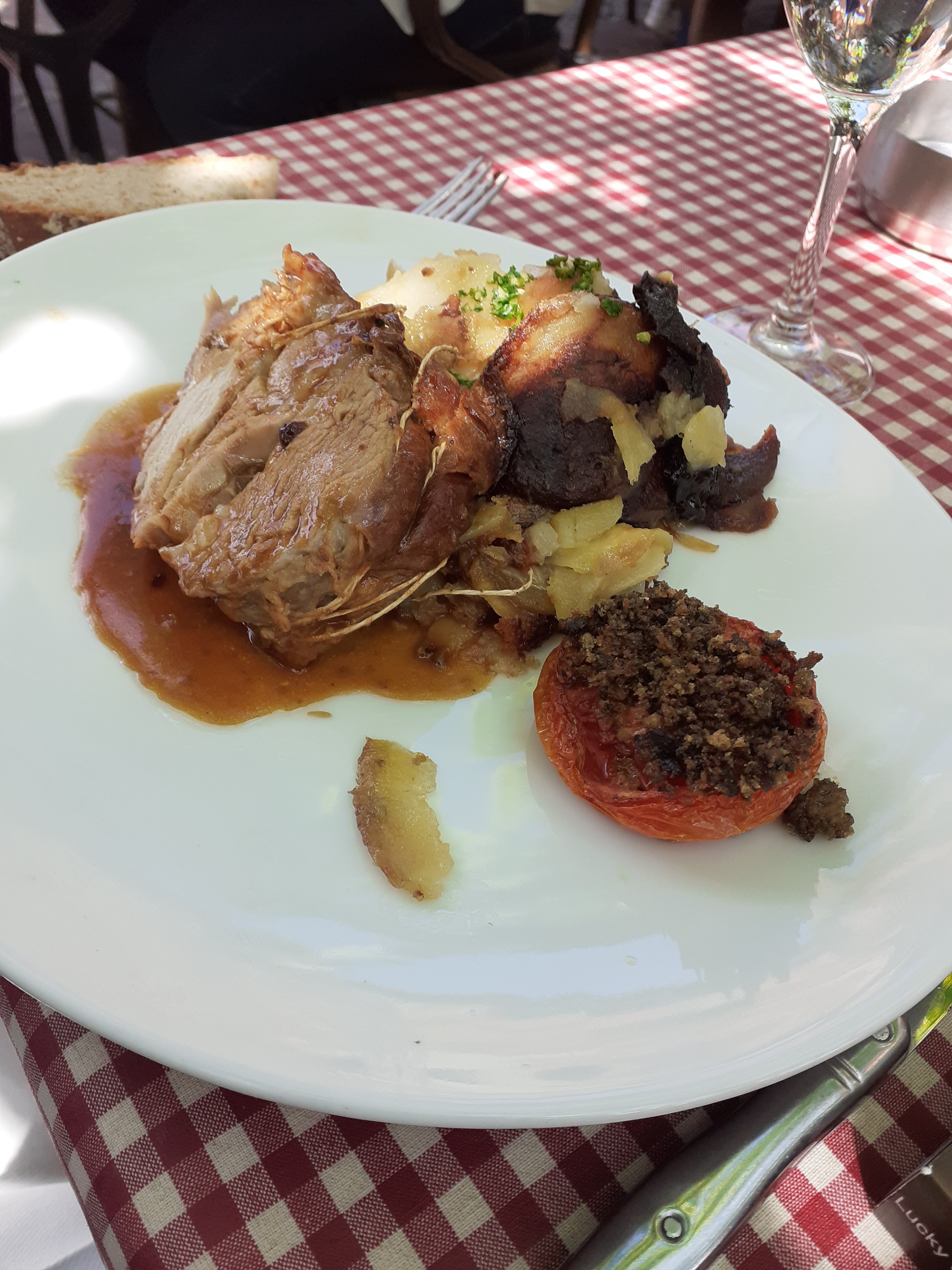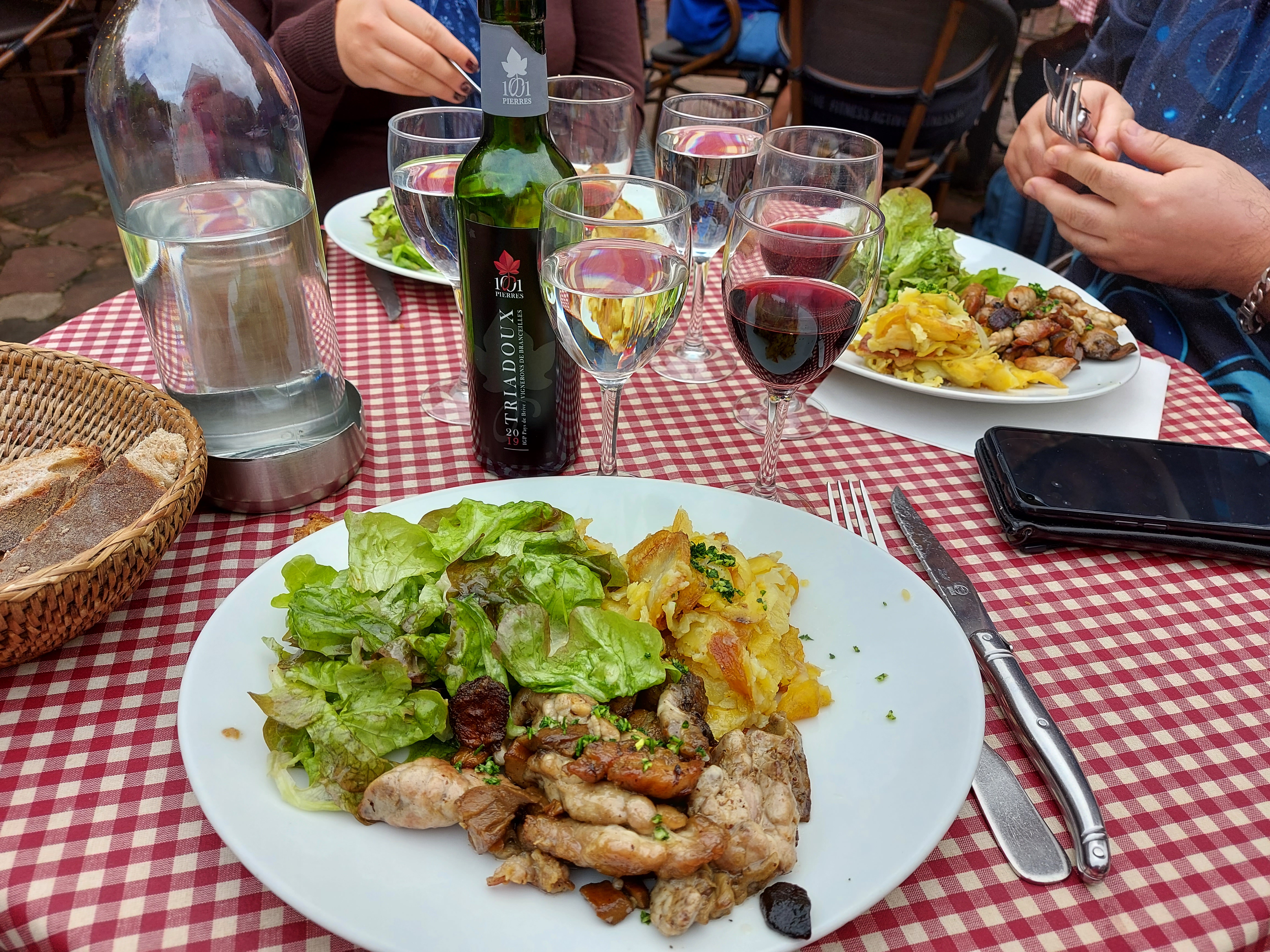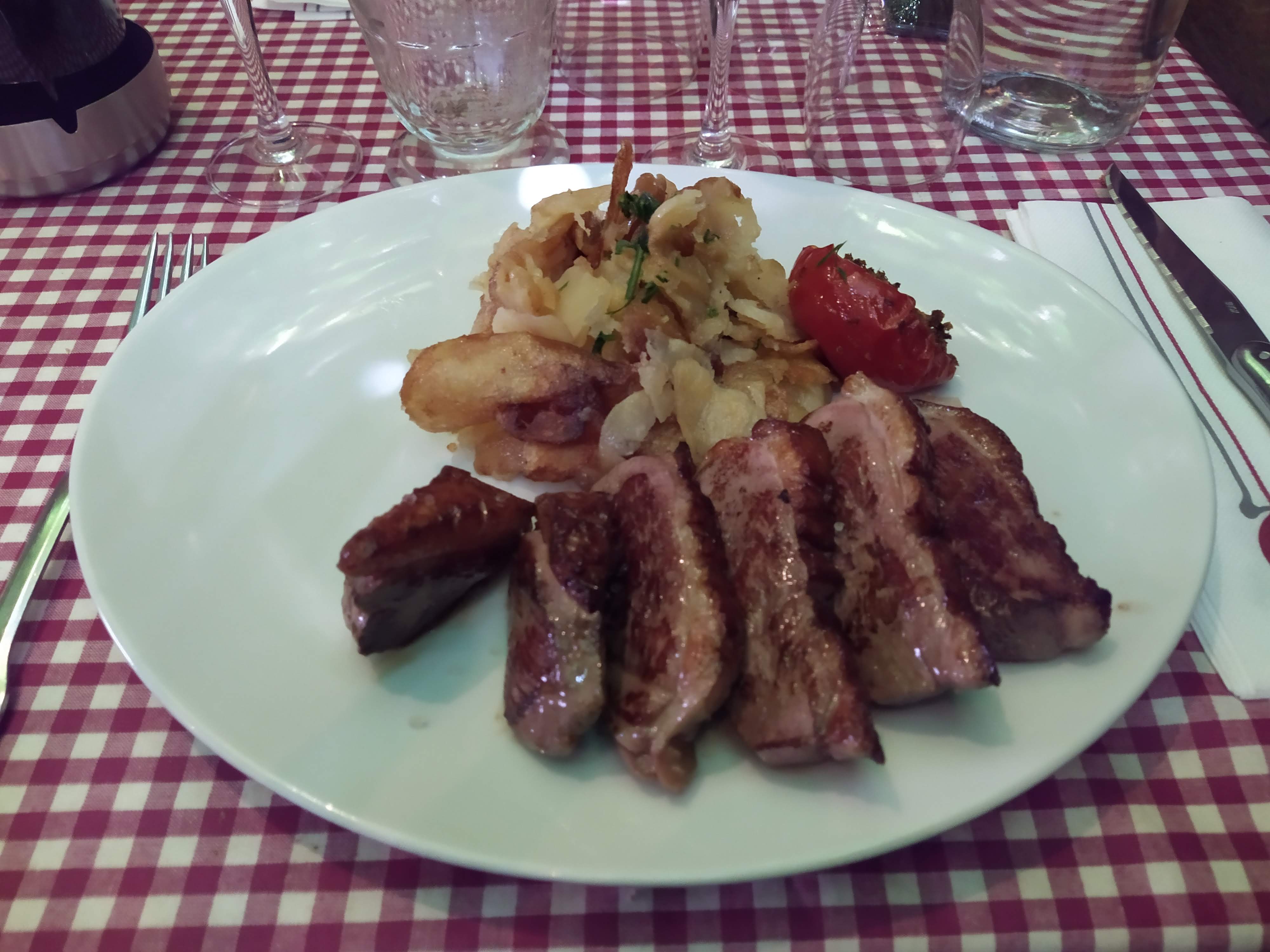 Après la visite du très beau village de Collonges la Rouge, déjeuner au cœur du village en terrasse ombragée par une treille. Décor très sympa, accueil et service très sympathique. Nous avons passé un très bon moment. Pavé de bœuf savoureux.