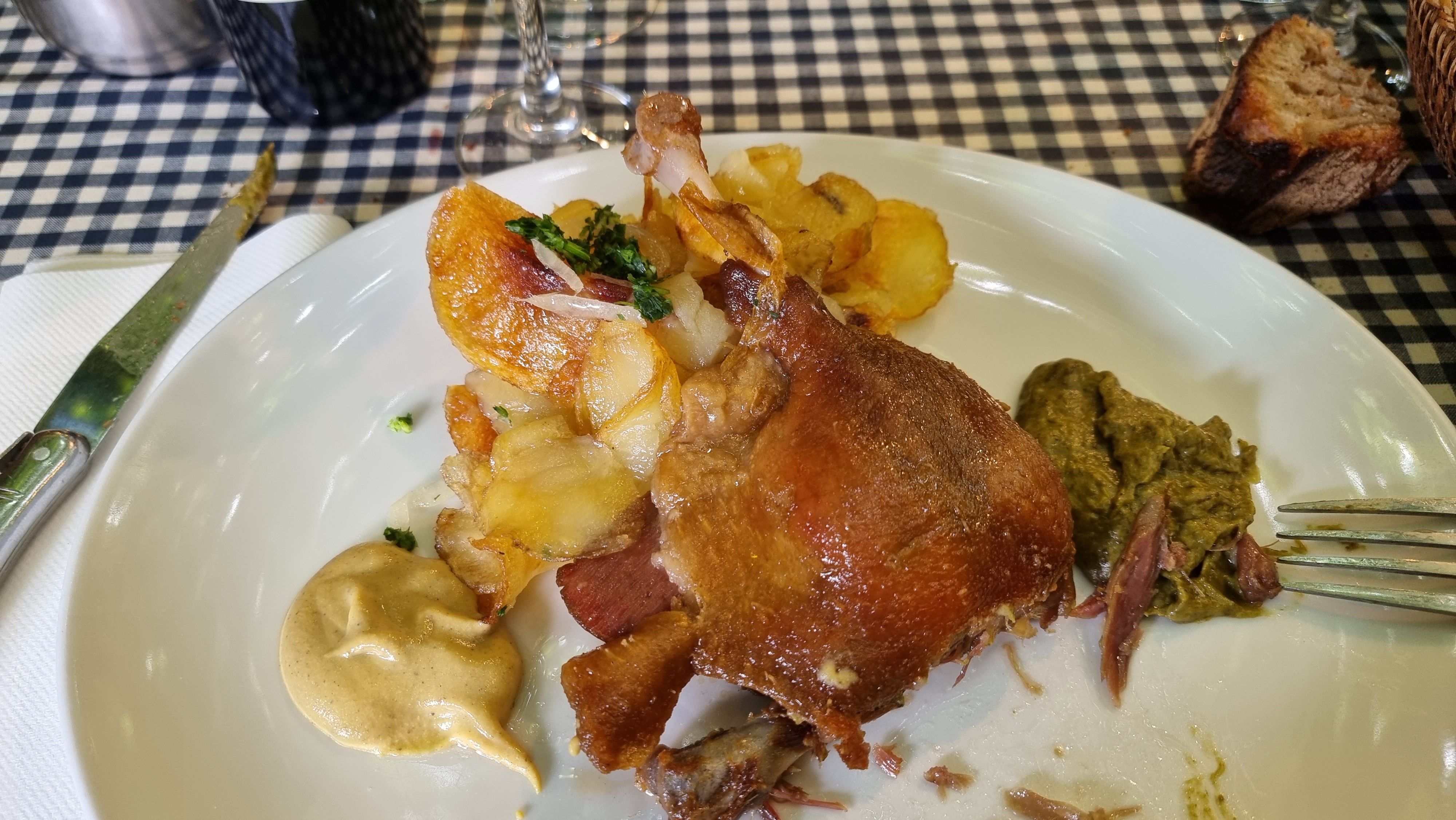 Excellente découverte dans un lieu pourtant tres touristique. Le cadre est super et la cuisine goûteuse et généreuse (confit, riz de veau, omelette maison, tete de veau...) Serveuse très sympa. Nous nous sommes régalés des plats aux desserts. Penser à réserver car endroit très prisé