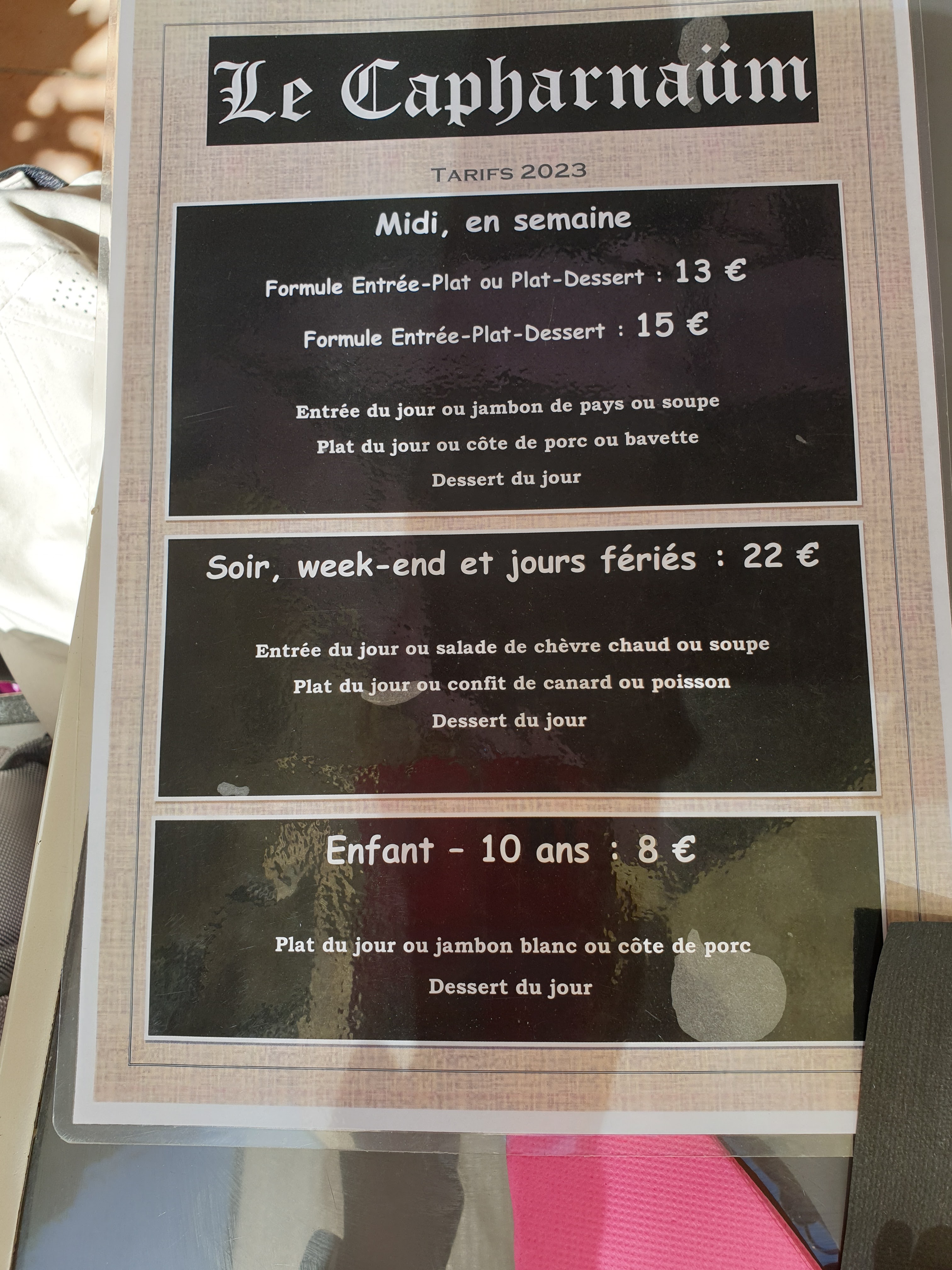 S'il y a un village à visiter en Tarn et Garonne, c'est sûrement St Antonin Noble Val. Si vous y allez, n'hésitez pas à vous arrêter au Capharnaüm. Le nom ne vous y incitera peut être pas, le lieu est un peu éloigné du centre, mais le village est petit, l'endroit est charmant et vous le trouverez facilement. L'accueil y est sympathique et la cuisine simple mais gourmande. Nous y avons passé un très agréable moment.