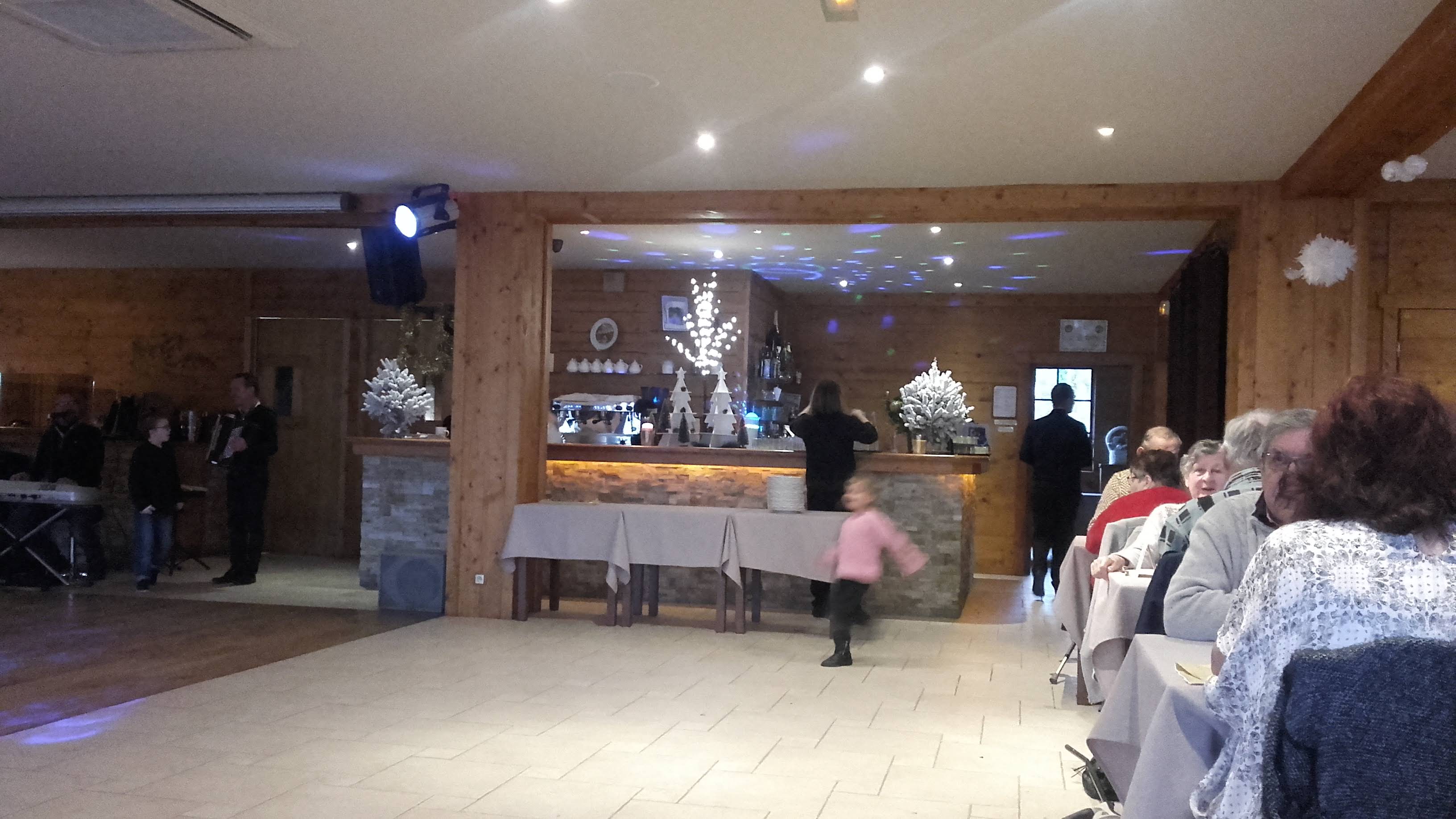Très belle salle. Le repas excellent et servi chaud. Très bonne ambiance avec un jeune accordéoniste super musicien. Excellente après midi. A refaire.
