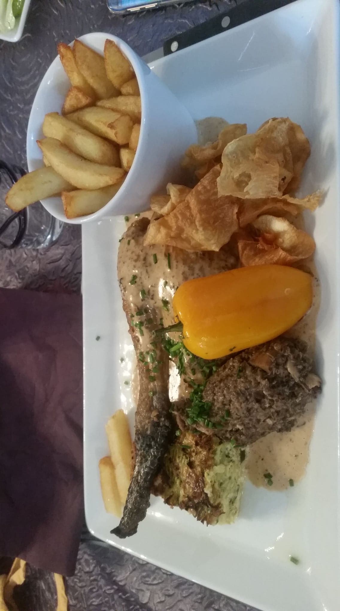Posté le 05/06/2023 à 07:15"Content d’aller manger une entrecôte charolaise, j’ai été déçue qu’on me serve une viande pleine de gras. Je l’ai dit au serveur il m’a dit que c’était normal le gras !! Ah ouaip du gras à l’intérieur même de la viande Representant un bon tiers de la pièce de viande ………. Réponse de la responsable…..c’est normal !! J’ai 58 ans manger quelques entrecôtes dans ma vie , largement plus présentable et meilleur…..juste l’impression qu’on m’a refilé une viande qui était bonne à vendre à une personne…..aucun geste fait à la facture , le reste du repas était excellent…."
