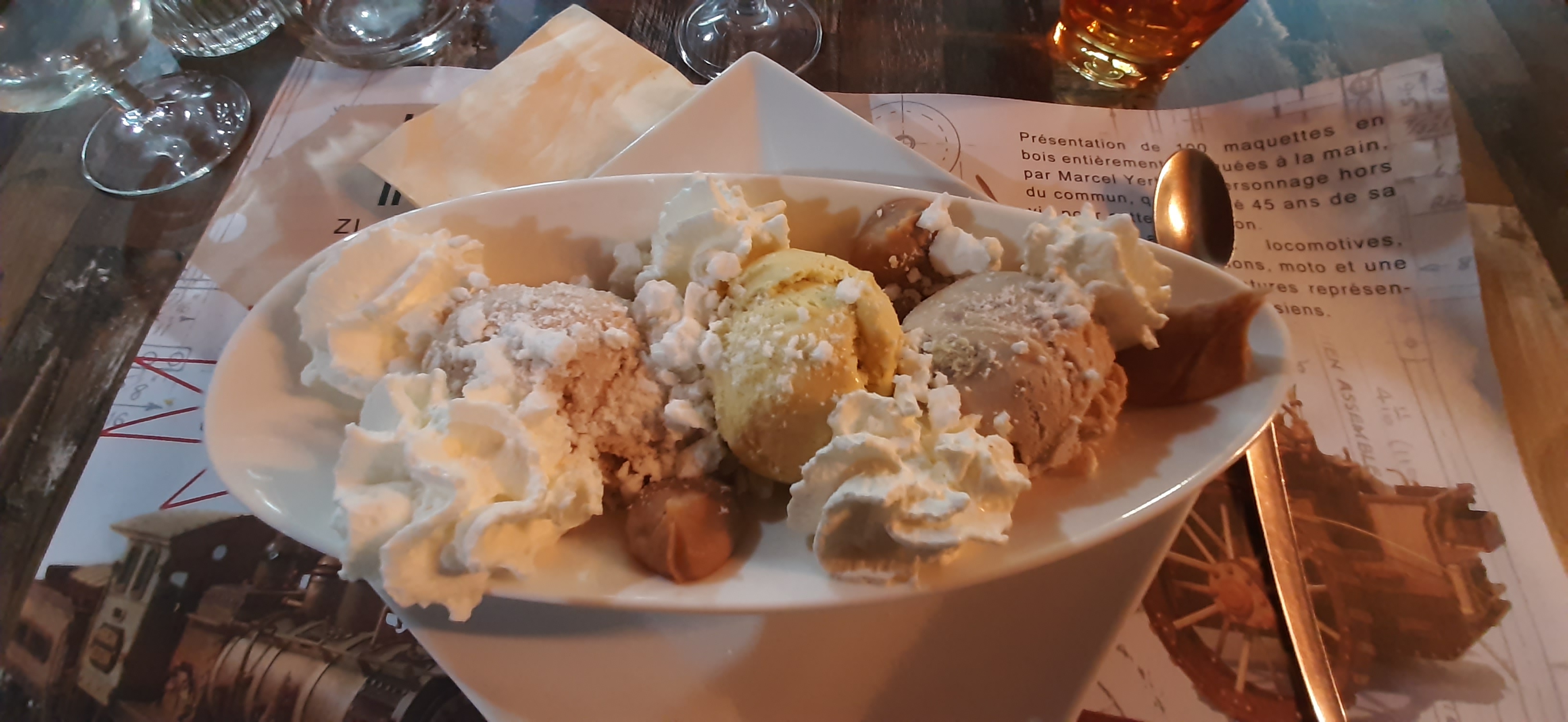 On a pris une tête de veau vraiment très bonne avec des profiteroles. Cuisine maison . On nous accueil jusqu'à 15h00 quand on est en vacance c est top .