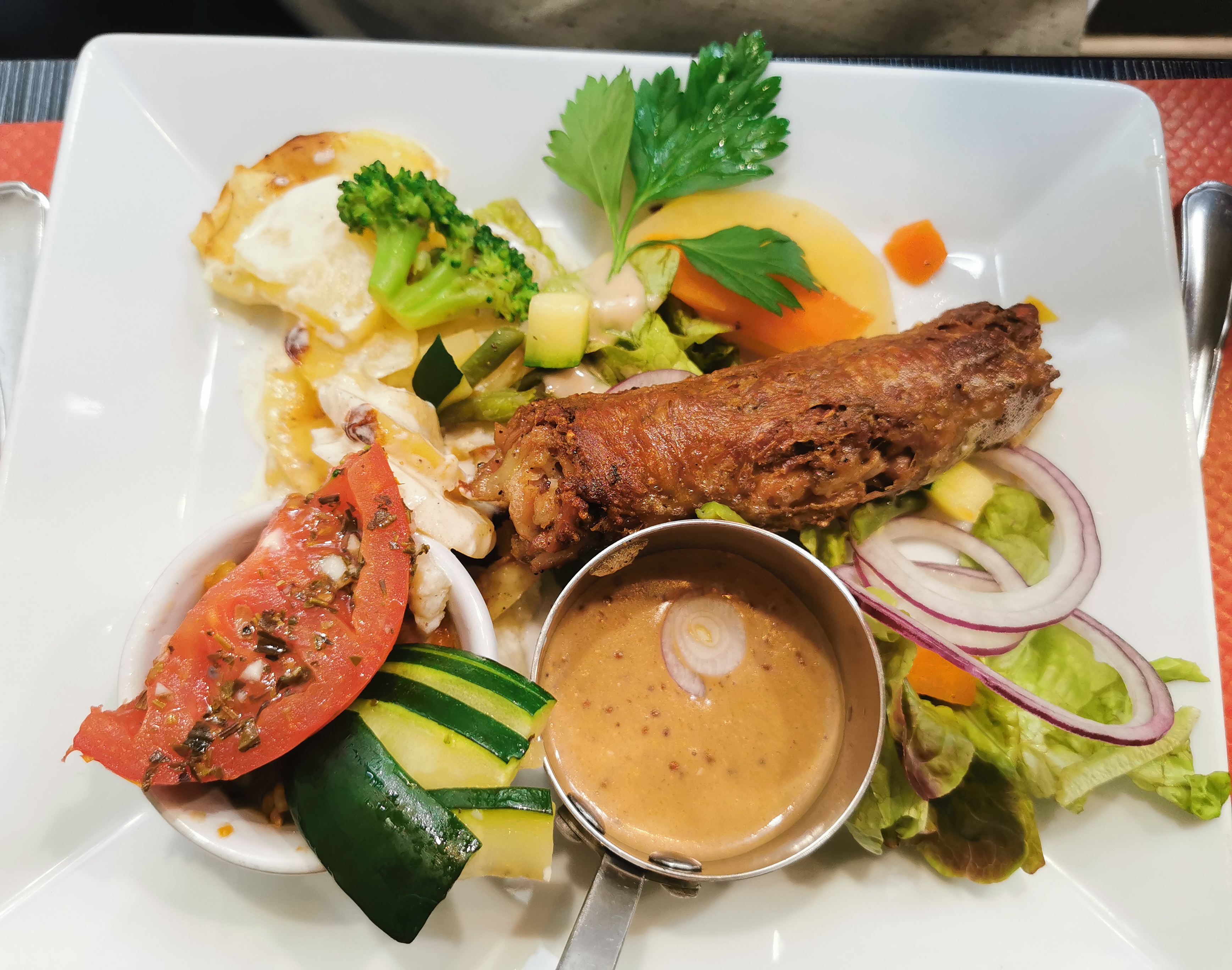 Même garniture pour tous les plats. Service non professionnel. Presque autant de graisse que de viande dans le goulash. Le fondant au chocolat n’a rien de fondant, c’est une part de gâteau au chocolat.