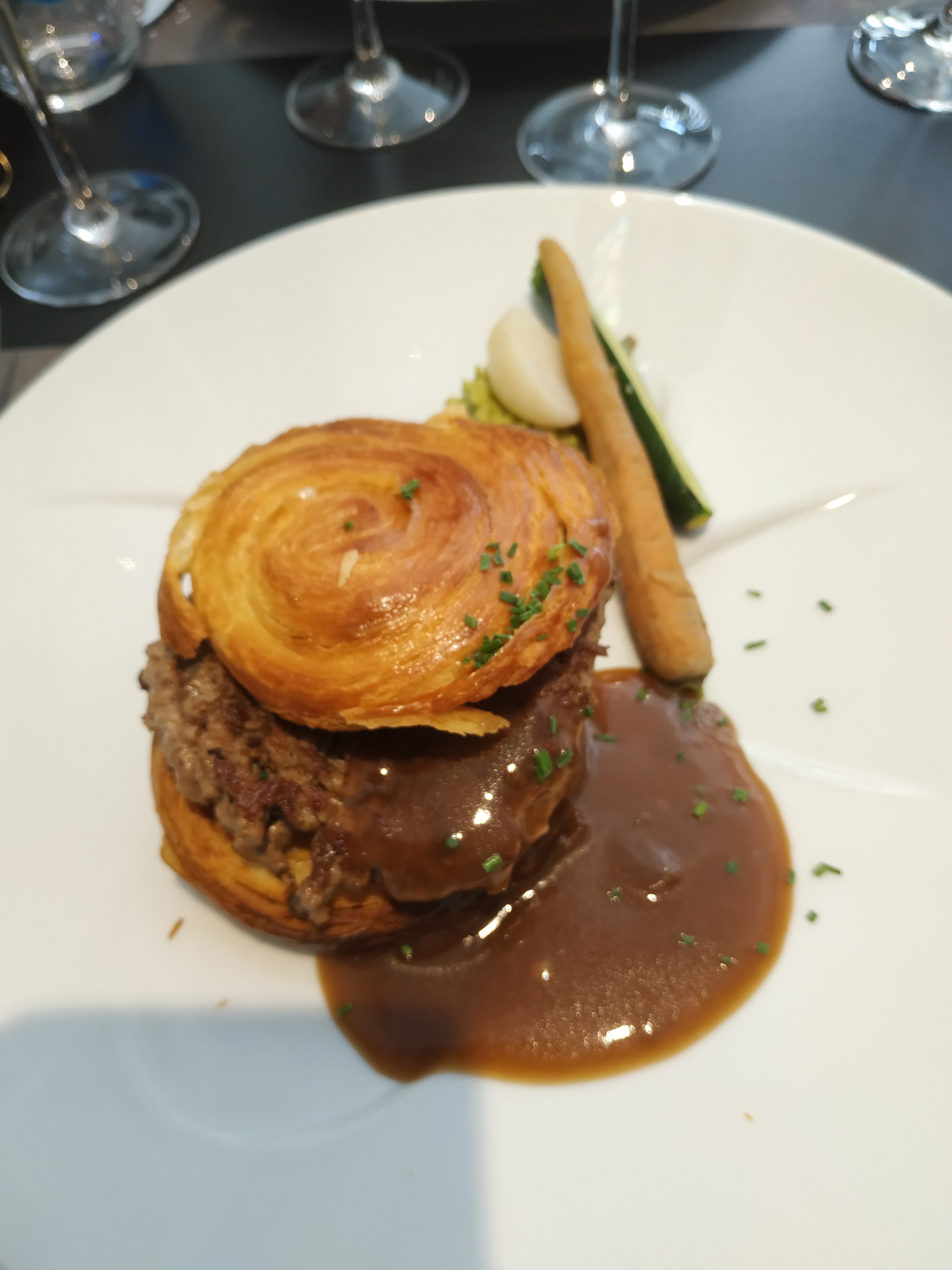 Une très belle soirée Repas excellent. Le foie gras maison est une merveille. Le Burger Angus ensuite était une très bonne idée : petits légumes, pain au parmesan, et beaucoup de goûts. J'ai beaucoup aimé le financier à la violette. Excellent et très fin. Personnel très gentil. Des petites erreurs mais rectifiées avec le sourire et beaucoup de gentillesse Un magicien de table en table pour des numéros sympas et bluffants Une mention toute particulière pour le responsable de l'établissement, aux petits soins pour les clients On n'a qu'une envie : revenir au plus vite