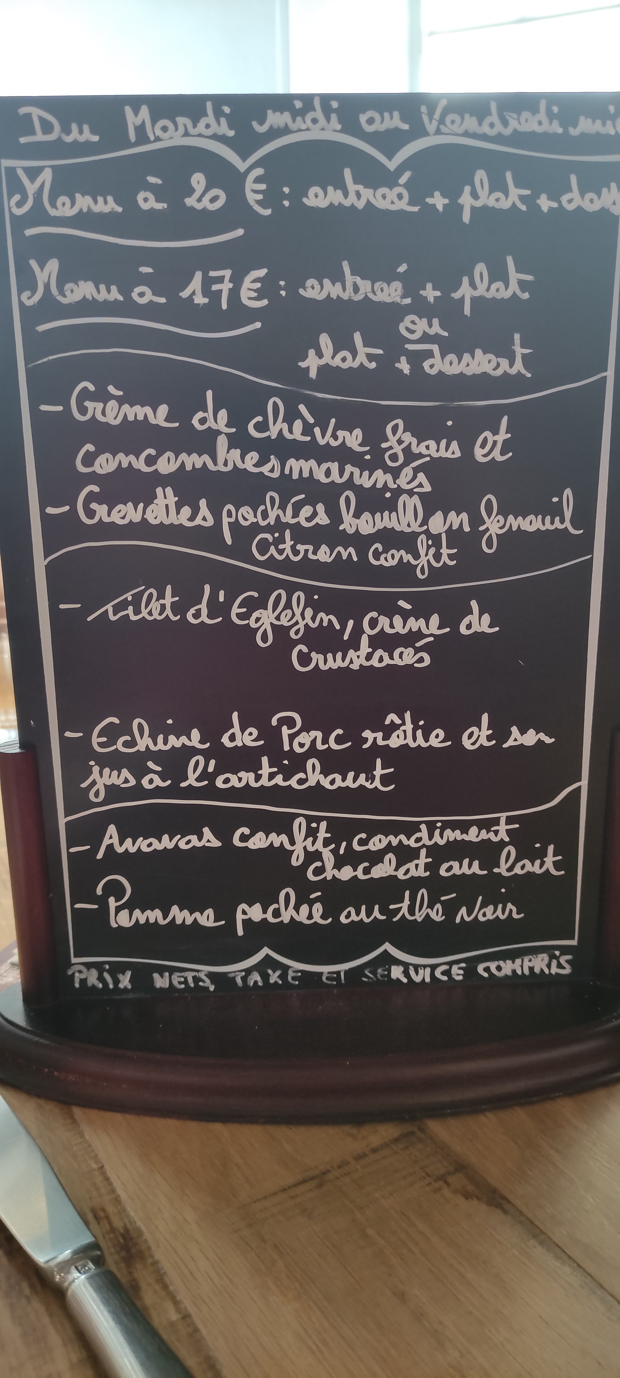 Posté le 21/11/2024 à 09:20"Nous sommes allés dîner là bas un mardi soir pour fêter mon anniversaire. La formule entrée + plat + dessert est à 33€ ce qui me paraît raisonnable compte tenu de la qualité des plats. L'ambiance est intimiste, c'est joliment décoré et typiquement normand. Le service est impeccable, le seul petit bémol était que ma chaise était pleine de miettes de pain ce qui n'était pas très agréable, mais je ne leur en tiens pas rigueur. Je vous recommande ce restaurant à 200% ! Et pensez à notifier vos allergies et intolérances lors de la réservation 😉 car nous avions oublié de le faire et donc c'était assez embarrassant pour la cheffe 😅"