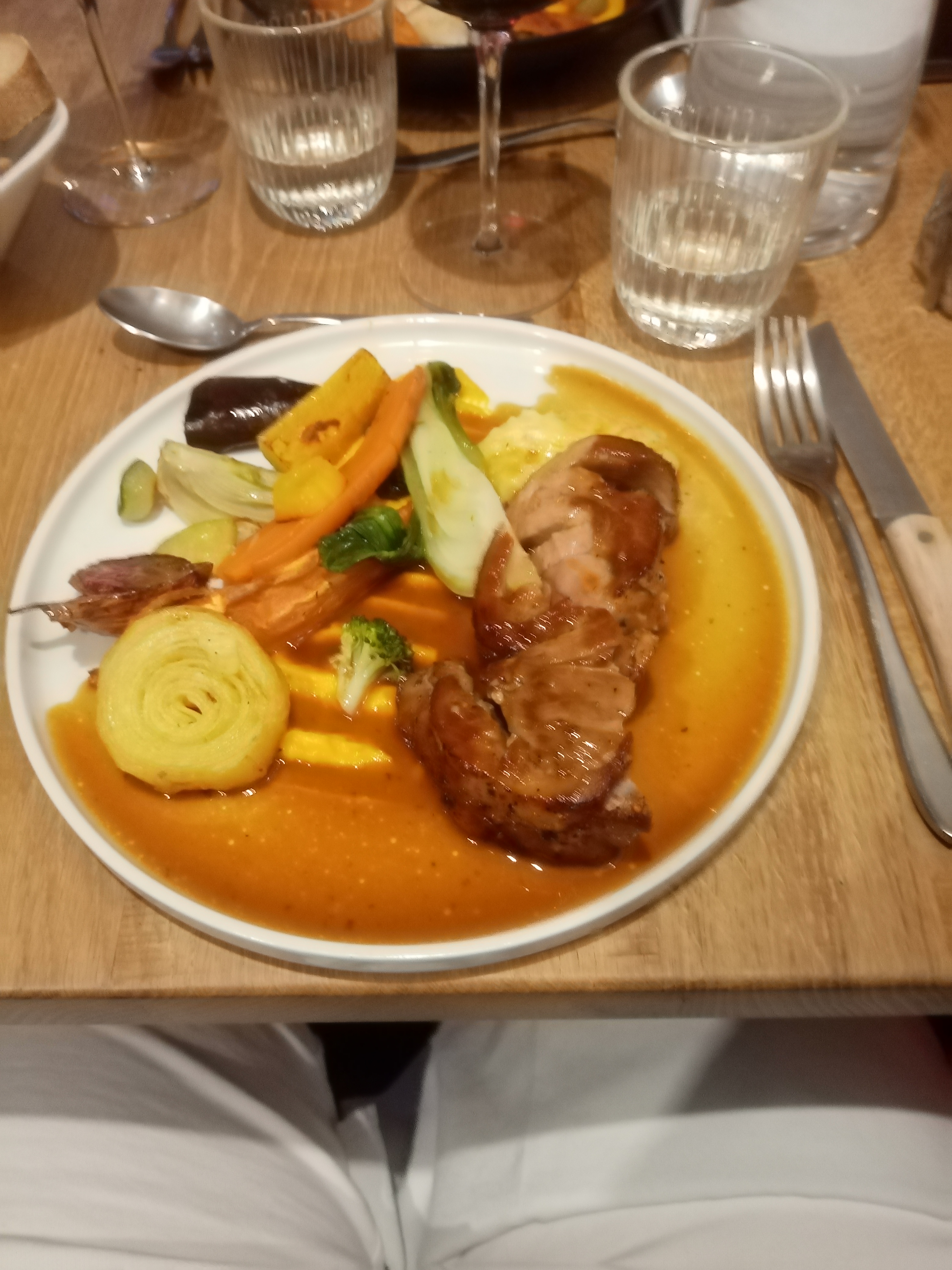 Nous y avons mangé ce midi , c’était très bien ,un petit bémol pour la cuisson du porc qui est un peu limite (un peu trop rosé pour du porc ! Les desserts , trop fruits, on aimerait bien autre chose… Le prix du café ( 2,70€) est exorbitant.. Rapport qualité prix correct.