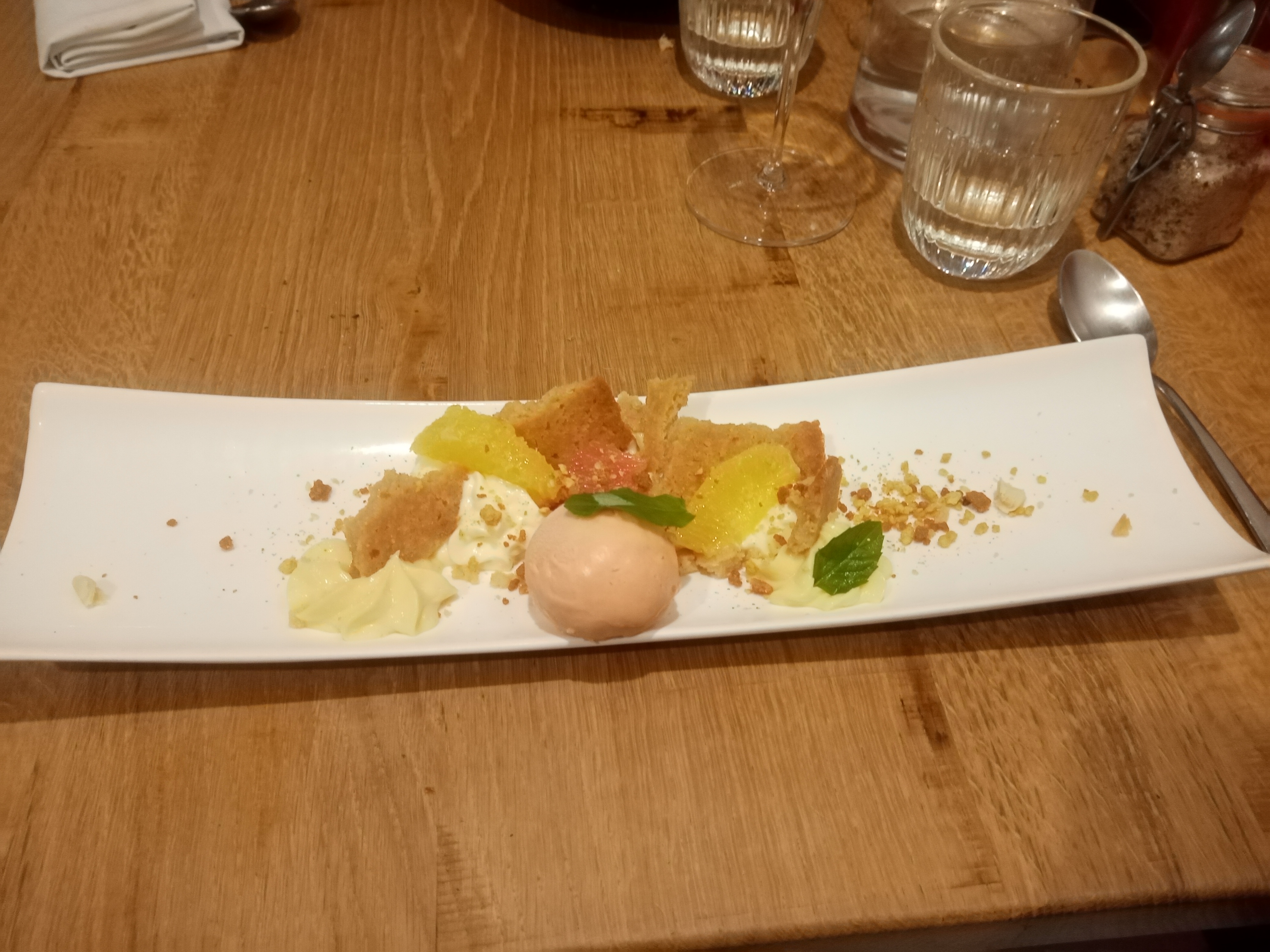 Que c'était délicieux. Du plat de lieu jaune avec ses succulents légumes de saison, et un dessert tout aussi bon. Très bonne qualité du service. Merci à vous Victor.