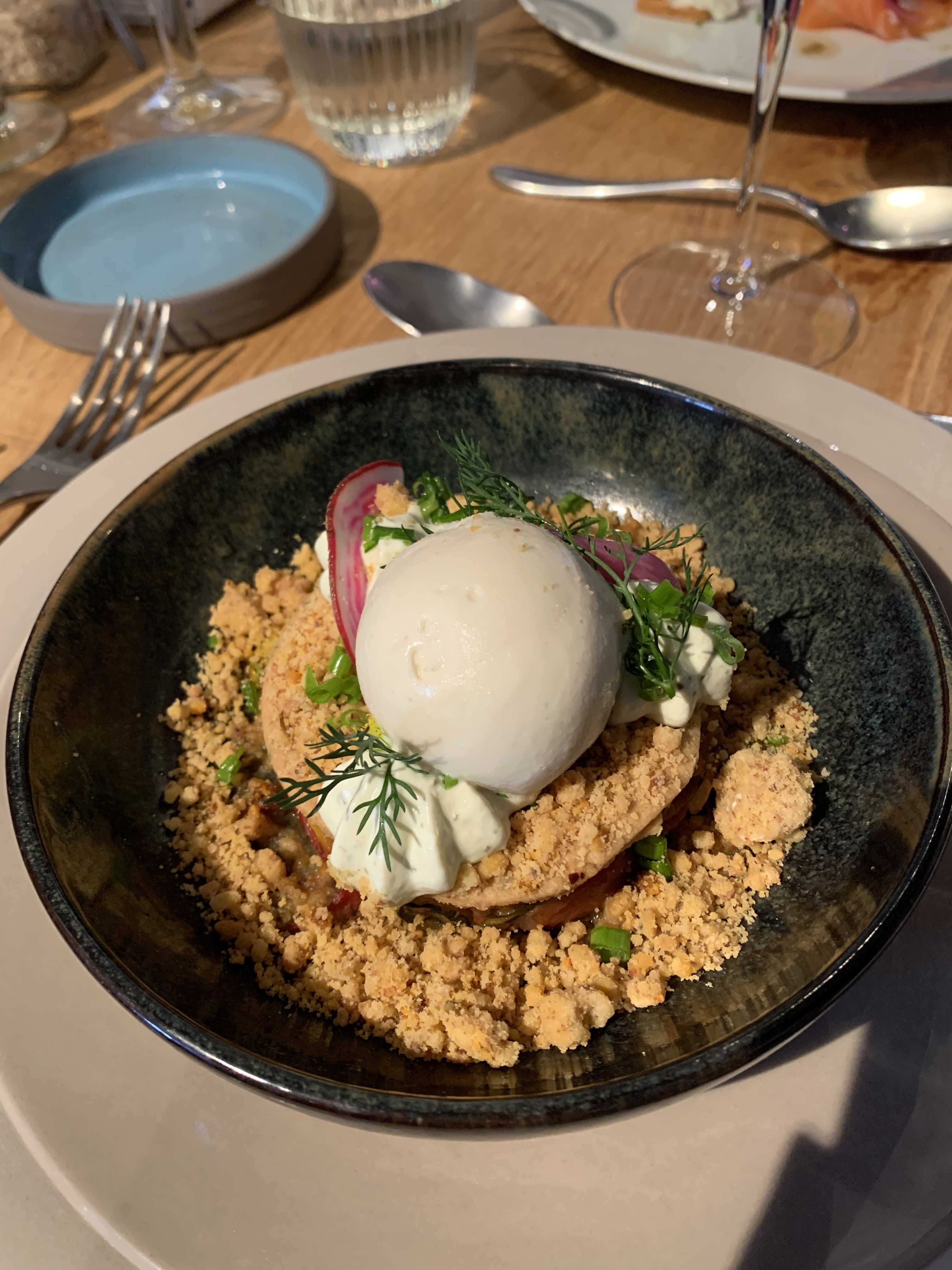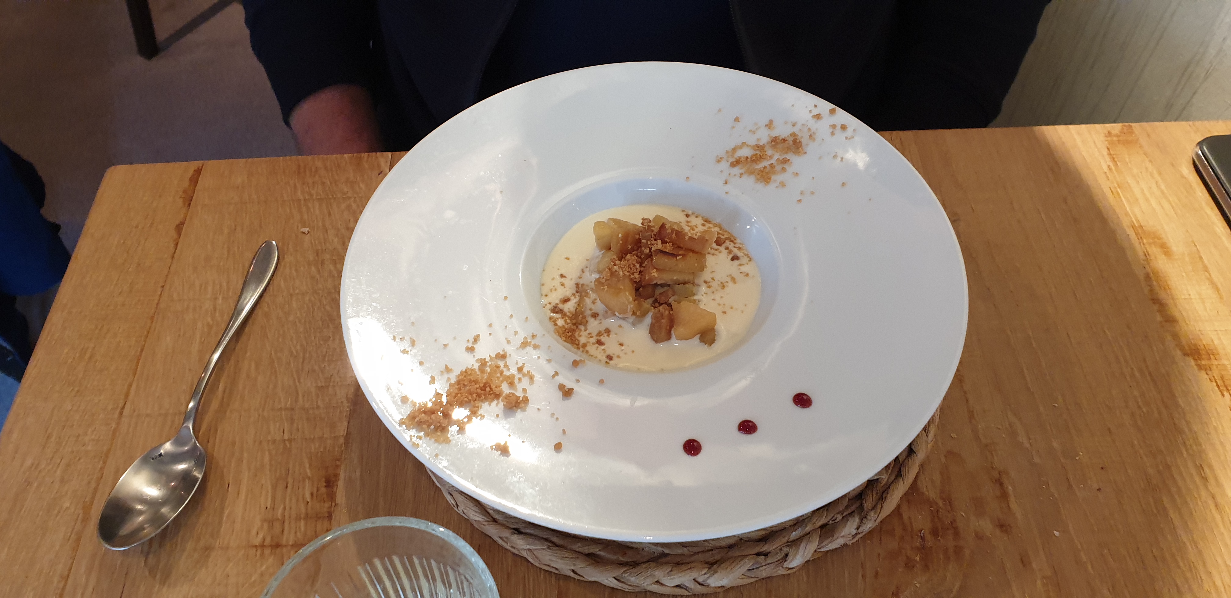 Nous sommes allés dîner là bas un mardi soir pour fêter mon anniversaire. La formule entrée + plat + dessert est à 33€ ce qui me paraît raisonnable compte tenu de la qualité des plats. L'ambiance est intimiste, c'est joliment décoré et typiquement normand. Le service est impeccable, le seul petit bémol était que ma chaise était pleine de miettes de pain ce qui n'était pas très agréable, mais je ne leur en tiens pas rigueur. Je vous recommande ce restaurant à 200% ! Et pensez à notifier vos allergies et intolérances lors de la réservation 😉 car nous avions oublié de le faire et donc c'était assez embarrassant pour la cheffe 😅