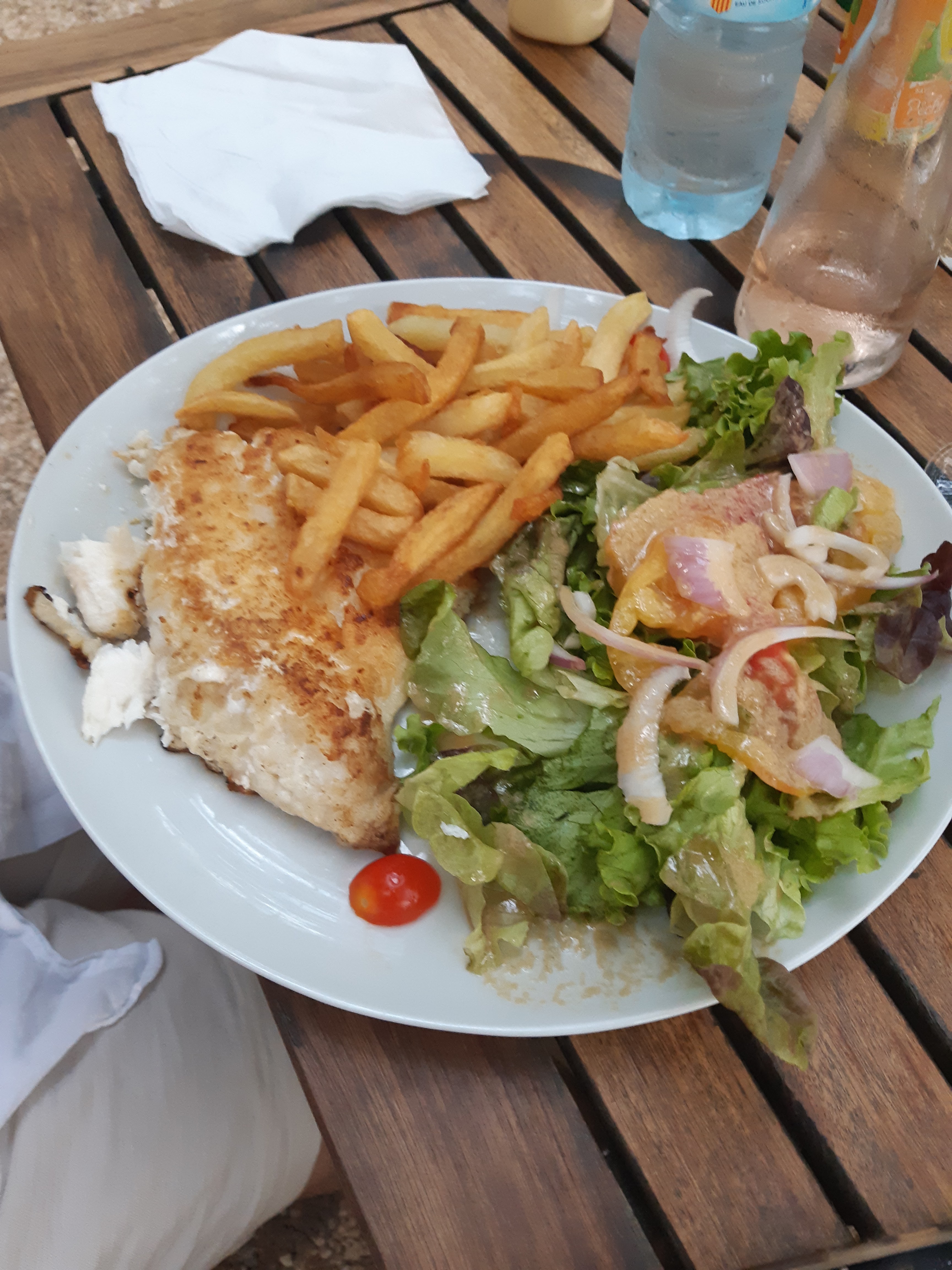 Excellent pour un repas en famille sous les tonnelles après la visite du château. Très bonnes gambas grillées frites