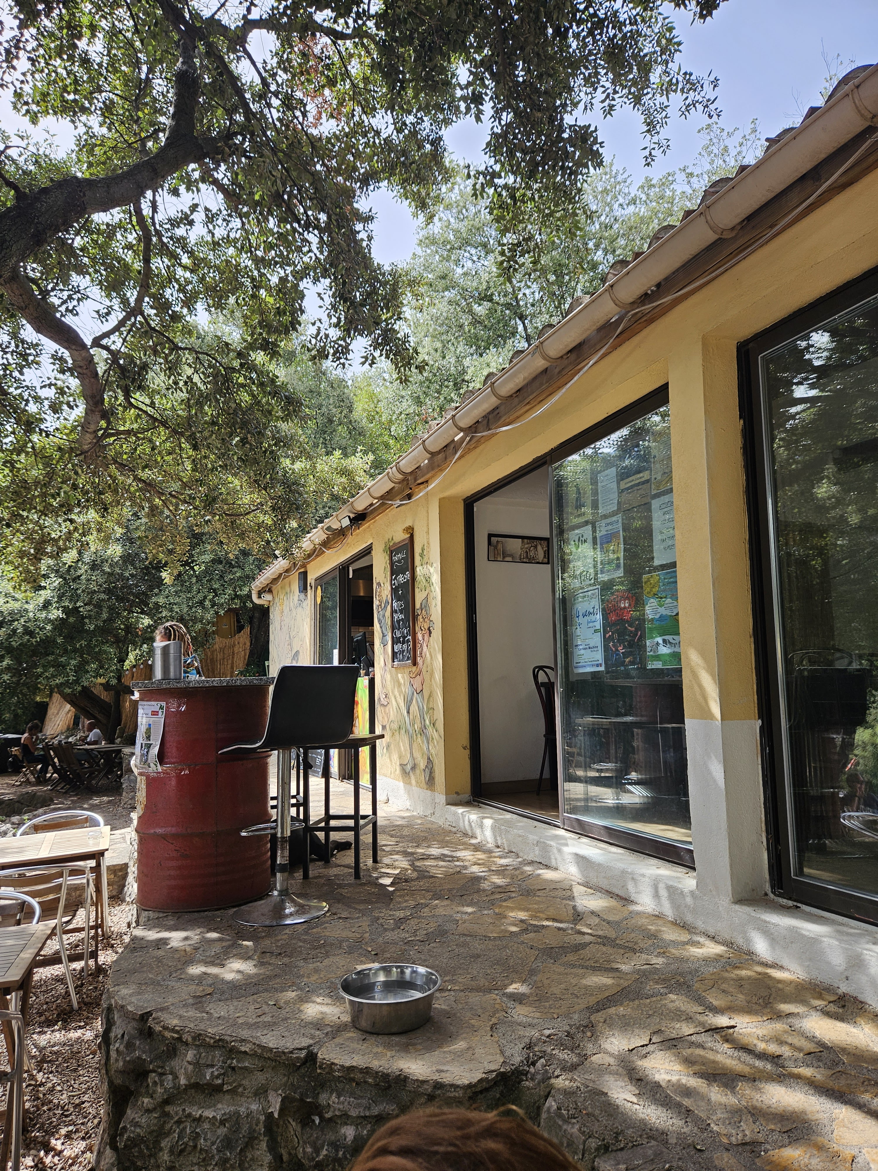 Super sympa pour manger ou boire un coup en allant ou en descendant du château. Très ombragé. Les propriétaires sont de bonnes humeurs (quel plaisir de voir le cuisto faire la cuisine en se dendinant sur du noir désir 😉) et très sympa. C'est bon, simple et pas cher.