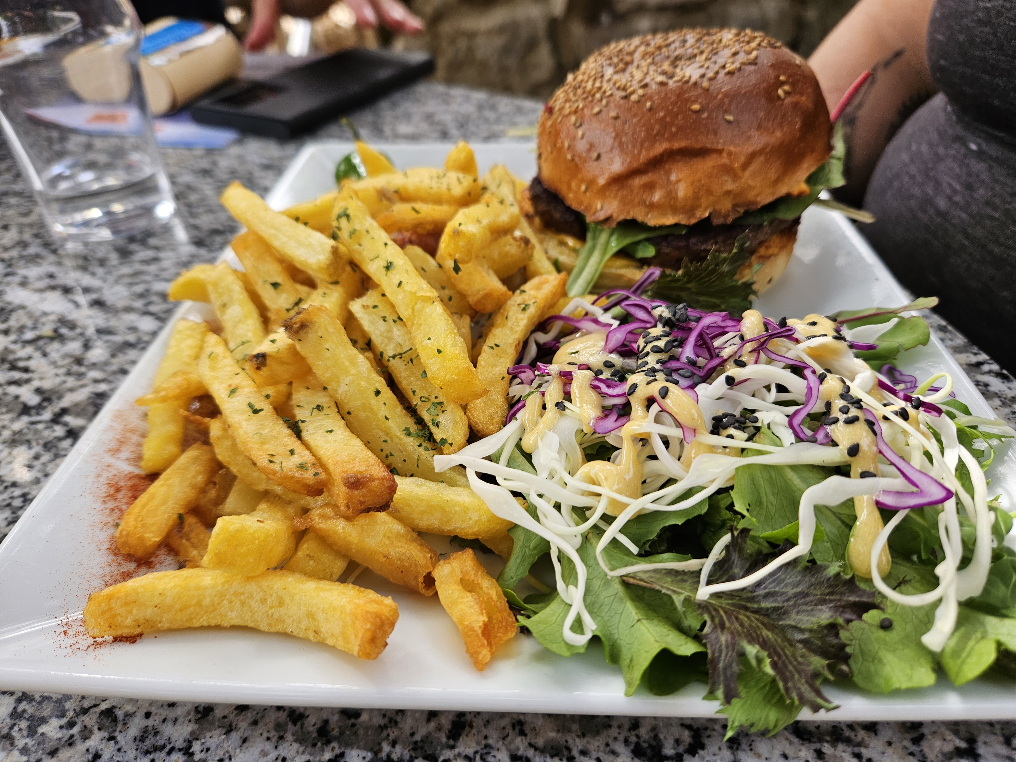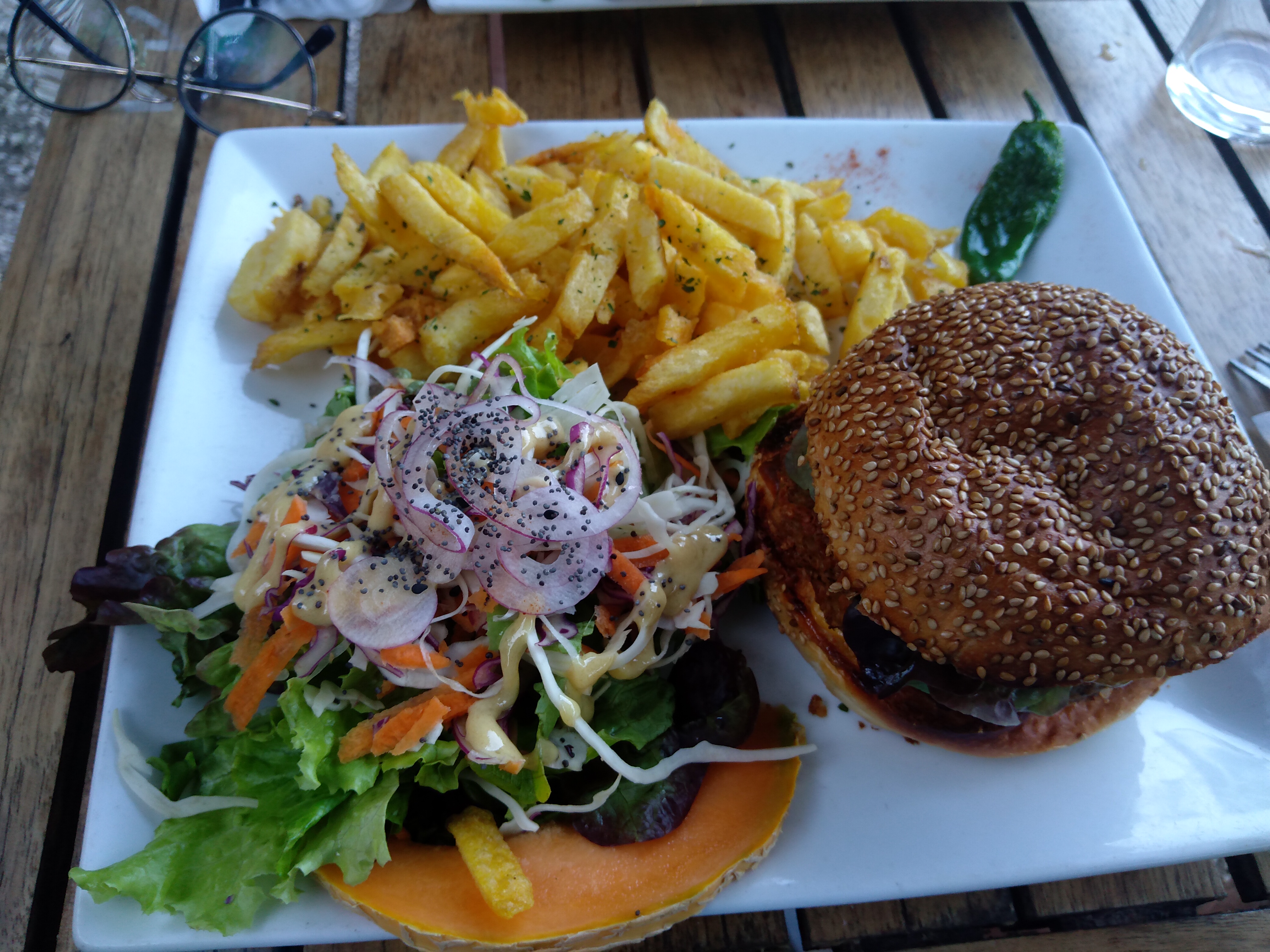 Burger classique et burger végé délicieux, endroit bien ombragé et aménagé. Très chill.