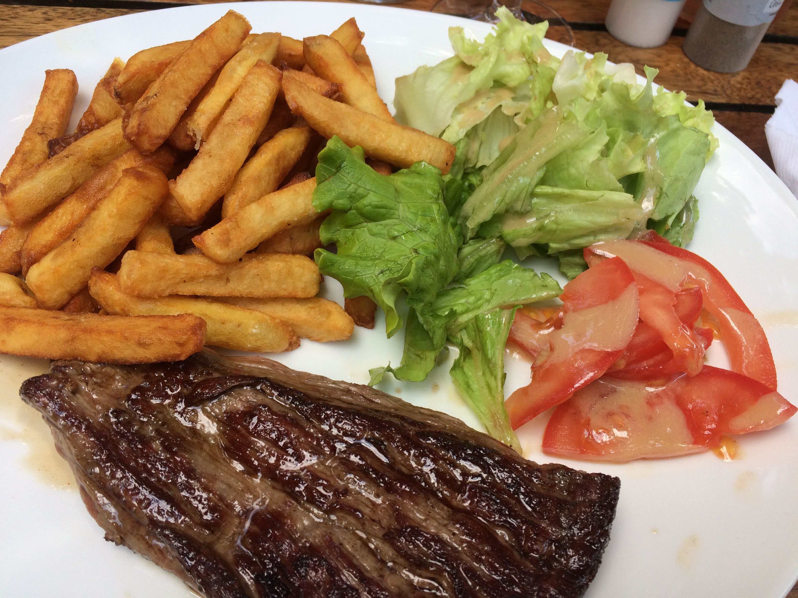 on pourrait peut être rajouter que c' est les frites maison épluchées a la main, que la bavette est de très bonne qualité, achetée sous vide avec des portions généreuses comme pour les frites... je sais pas ce que vous espériez pour 10€ en étant servie très rapidement... excusez moi mais ce n'est absolument pas la définition d'un piège a touriste à mon sens