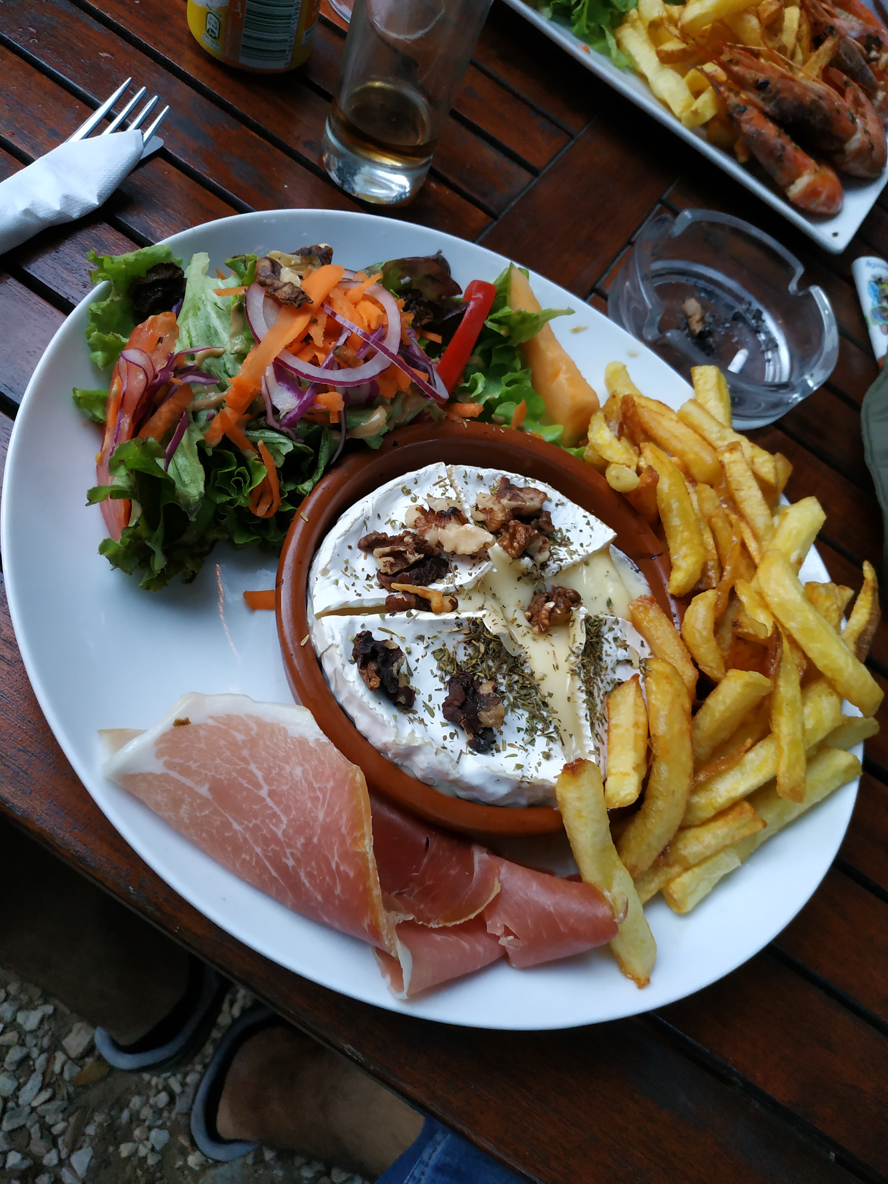 Dejeuner de grillades au frais sous les Chênes verts. Un vrai moment de dépaysement et...de plaisir gustatif simple mais efficace. Des prix très très corrects et un service de qualité Grillade de gambas avec frites maison et une vraie salade assaisonnée très goûteuse pour 16€...😀