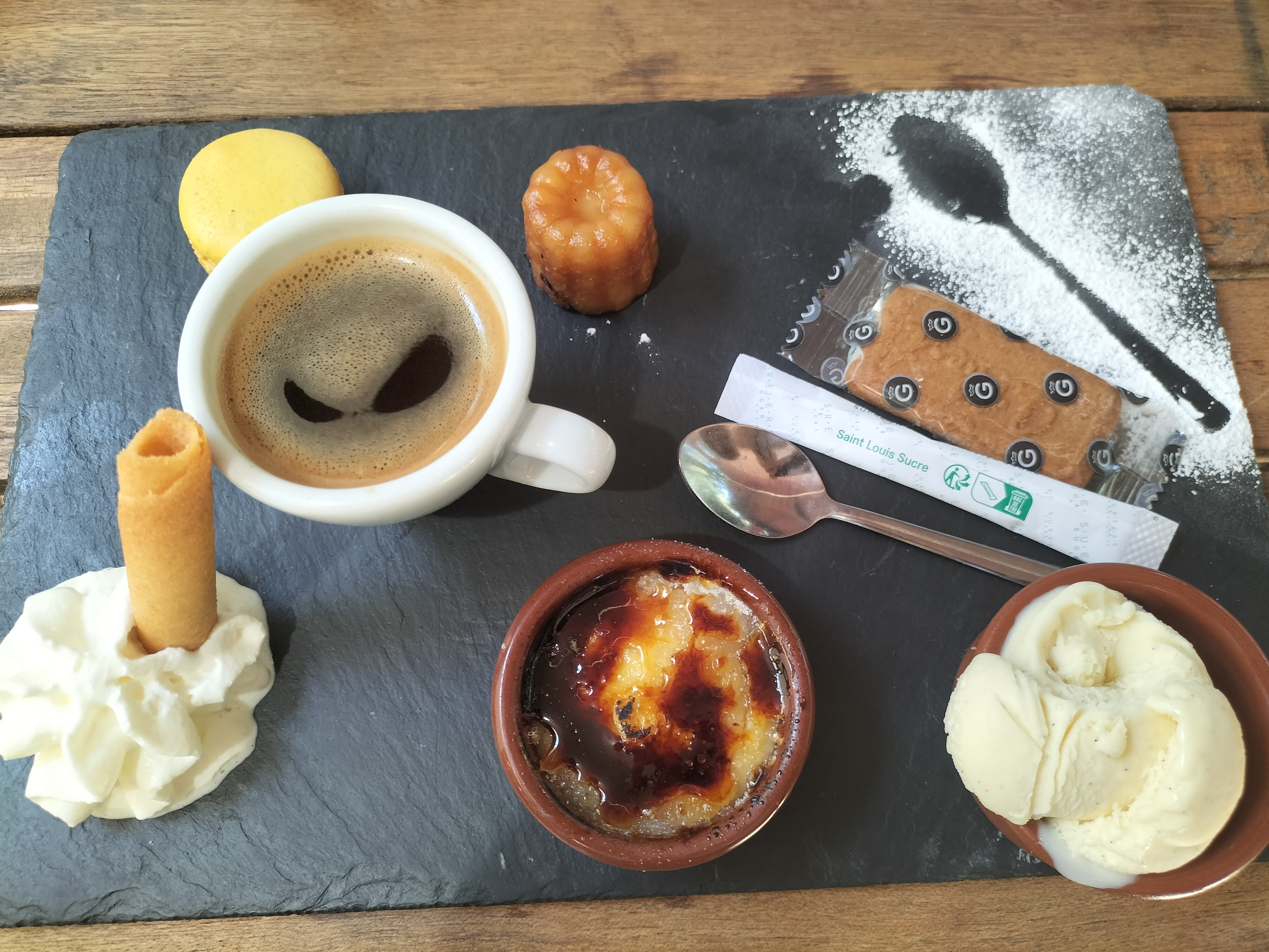 Sympathique terrasse pour y déjeuner, accueil agréable. Le petit fils et le papy se sont régalés avec leurs hamburgers maison ainsi que la coupe de glace. Galette copieuse avec un bon café gourmand pour la mamie.