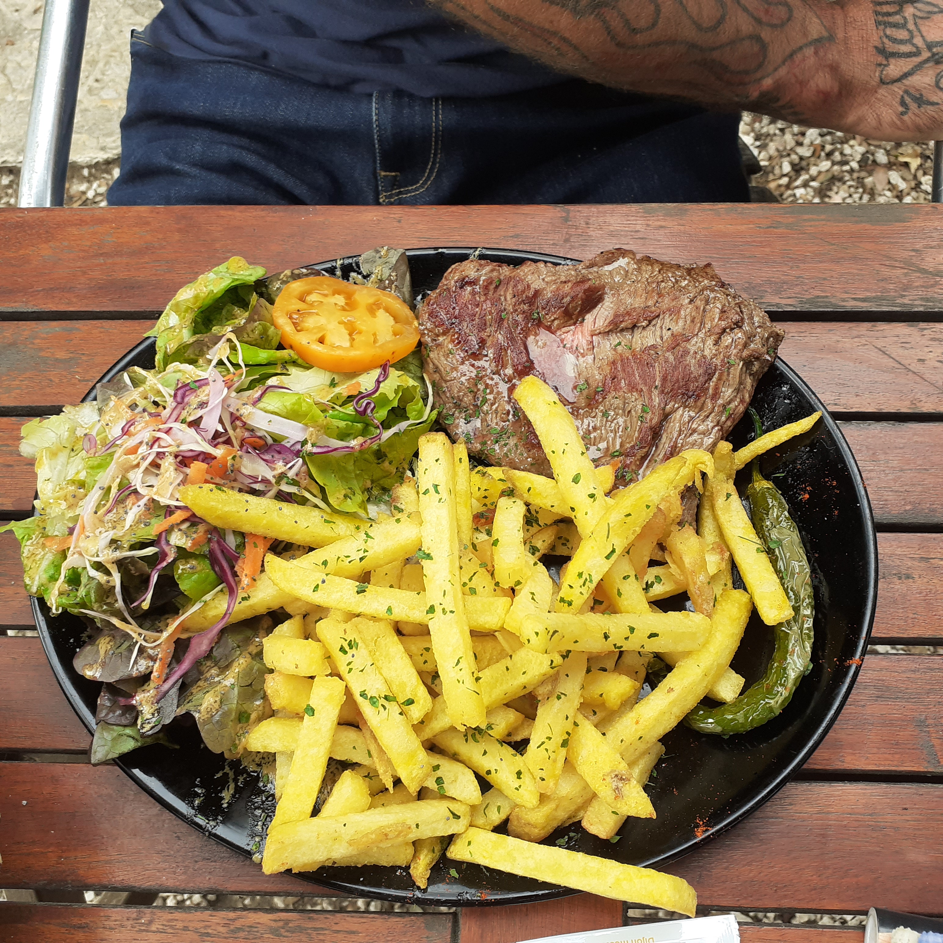 Nous sommes arrivés tard et nous avons pu manger, merci à vous, viande et frites maison bonnes .