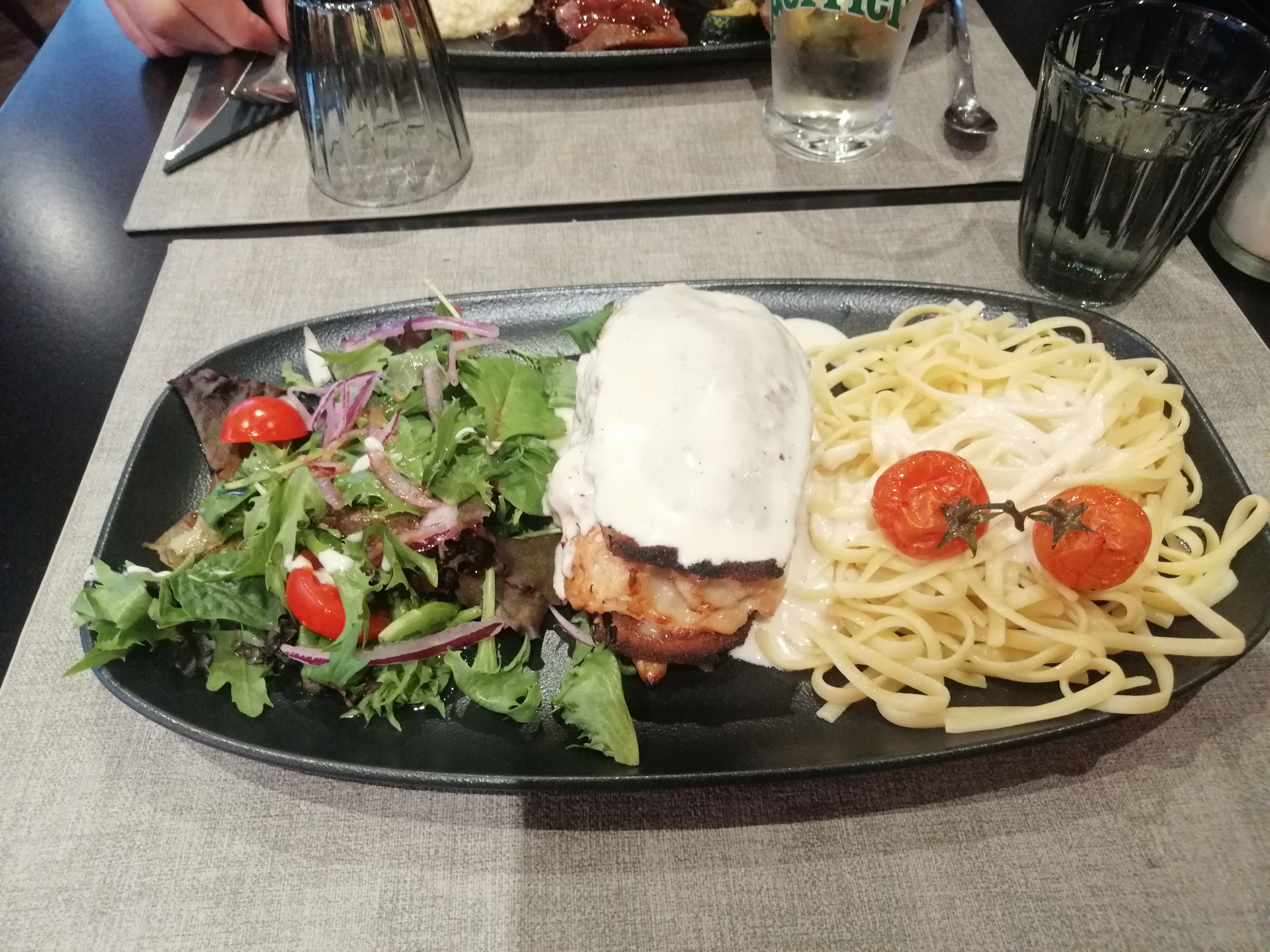 Posté le 08/08/2023 à 17:38"Un peu déçu par le cordon bleu qui est pourtant maison...peut être la qualité de la viande est un peu caoutchouc en bouche. Les frites pas top du burger toutes molles. Bref ni whaou ni mauvais...ça va pour y manger rapidement dans le cadre du travail. Service souriant et rapide. Carte du restaurant variée et terrasse ombragée. Le burger était bon"