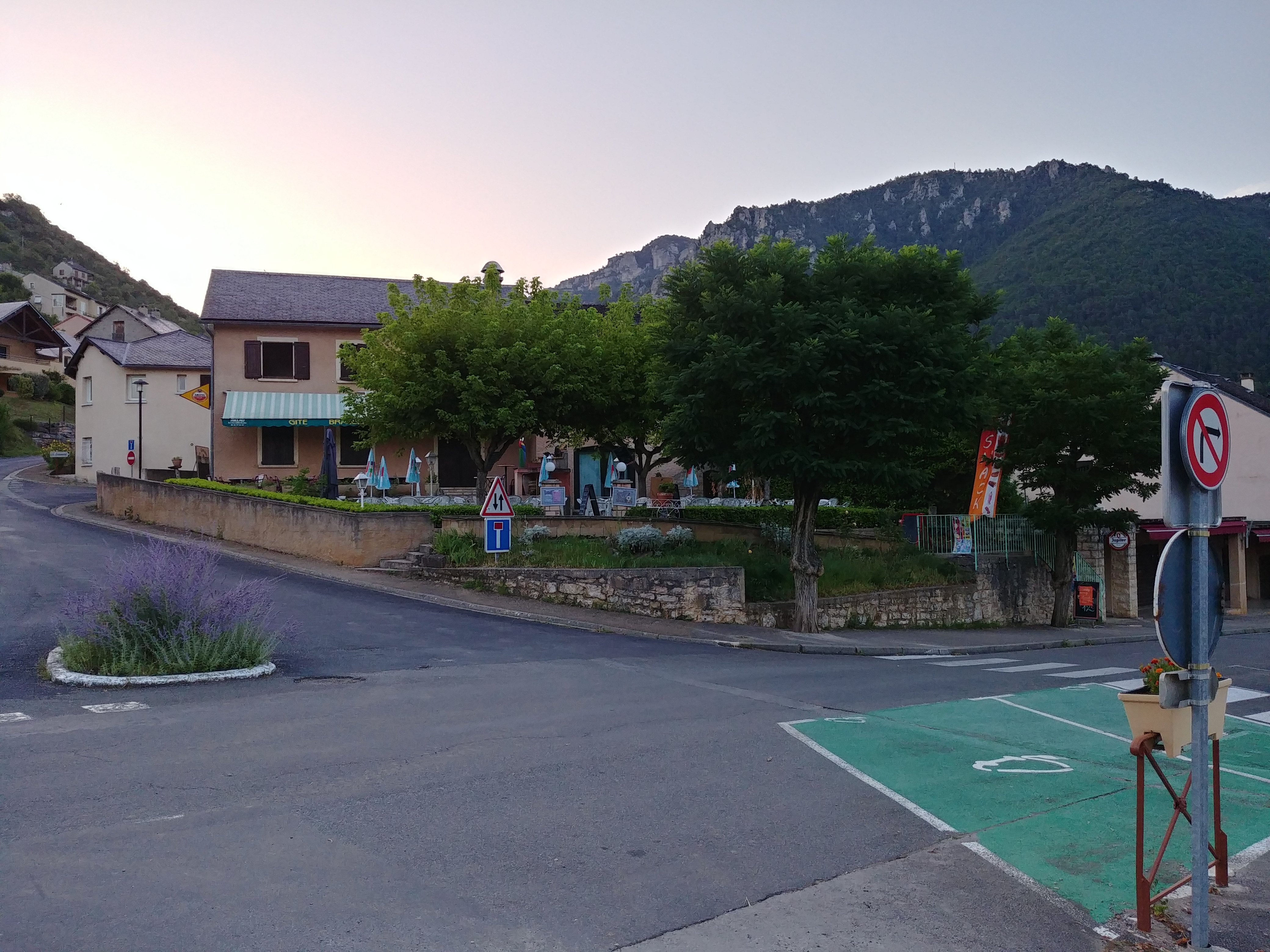 Terrasse agréable dans le village très commercial du Rozier, juste bu un verre donc voilà