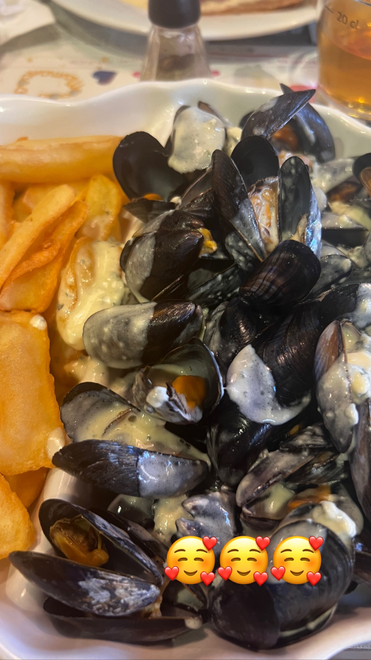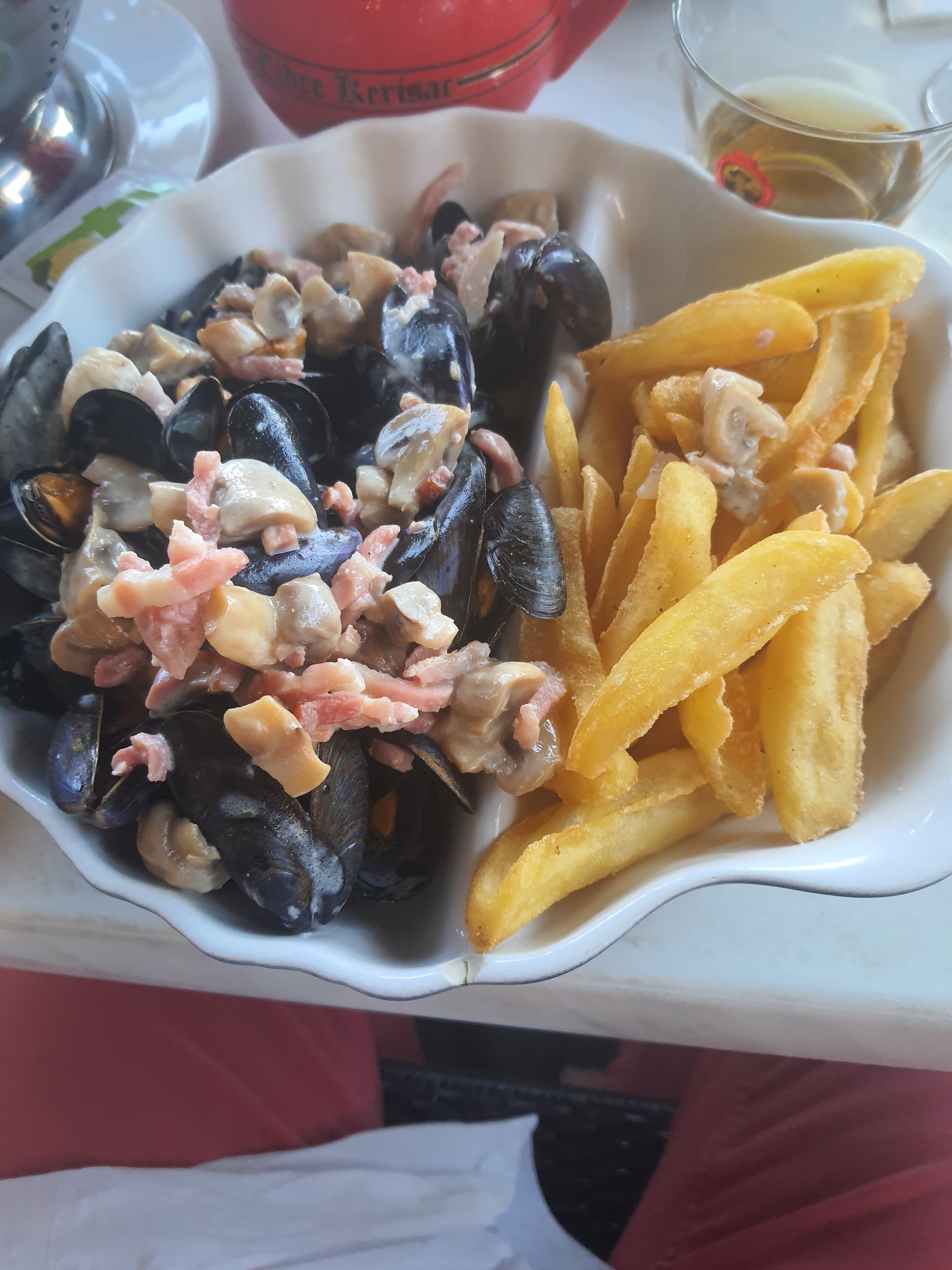 Les meilleures moules de bouchot au bleu d’Auvergne que je n’ai jamais mangé ! Par contre refroidissent vite dans une assiette … service rapide que du +