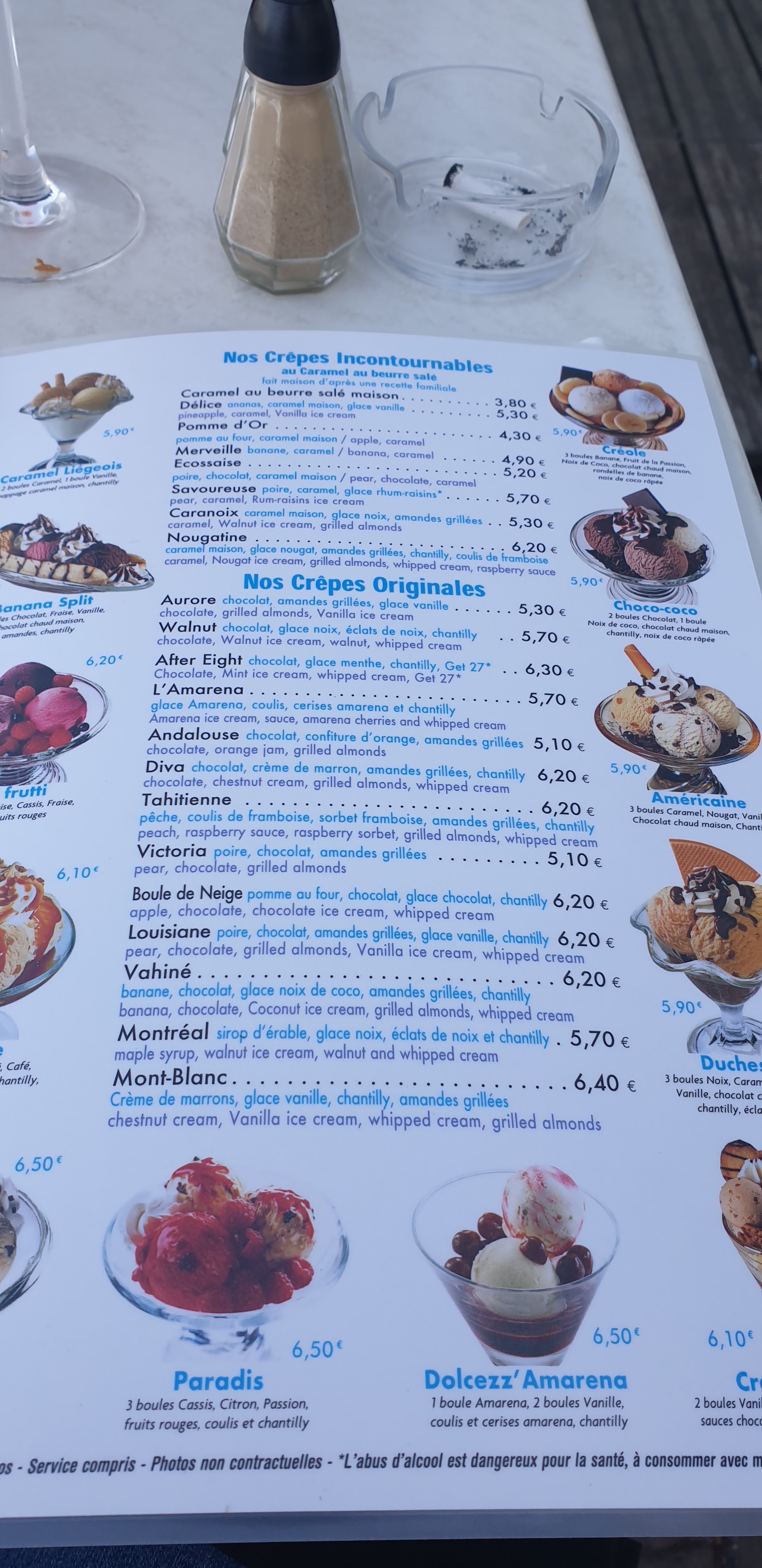 J'y suis allee deux fois pendant mon sejour et dependant du serveur, je n ai pas eu le meme accueil. Clairement, la politesse et le respect du client n'etait pas la priorite de tout le staff. Cependant, mon fils de 3 ans etait tres content, il y avait des coloriages et c etait clairement une ambiance familiale. En dehors des crepes, les autres plats semblent en parti surgelé et sont arrives trop cuits. Je ne deconseille pas la place mais ce n etait pas le restaurant le plus agreable du coin.