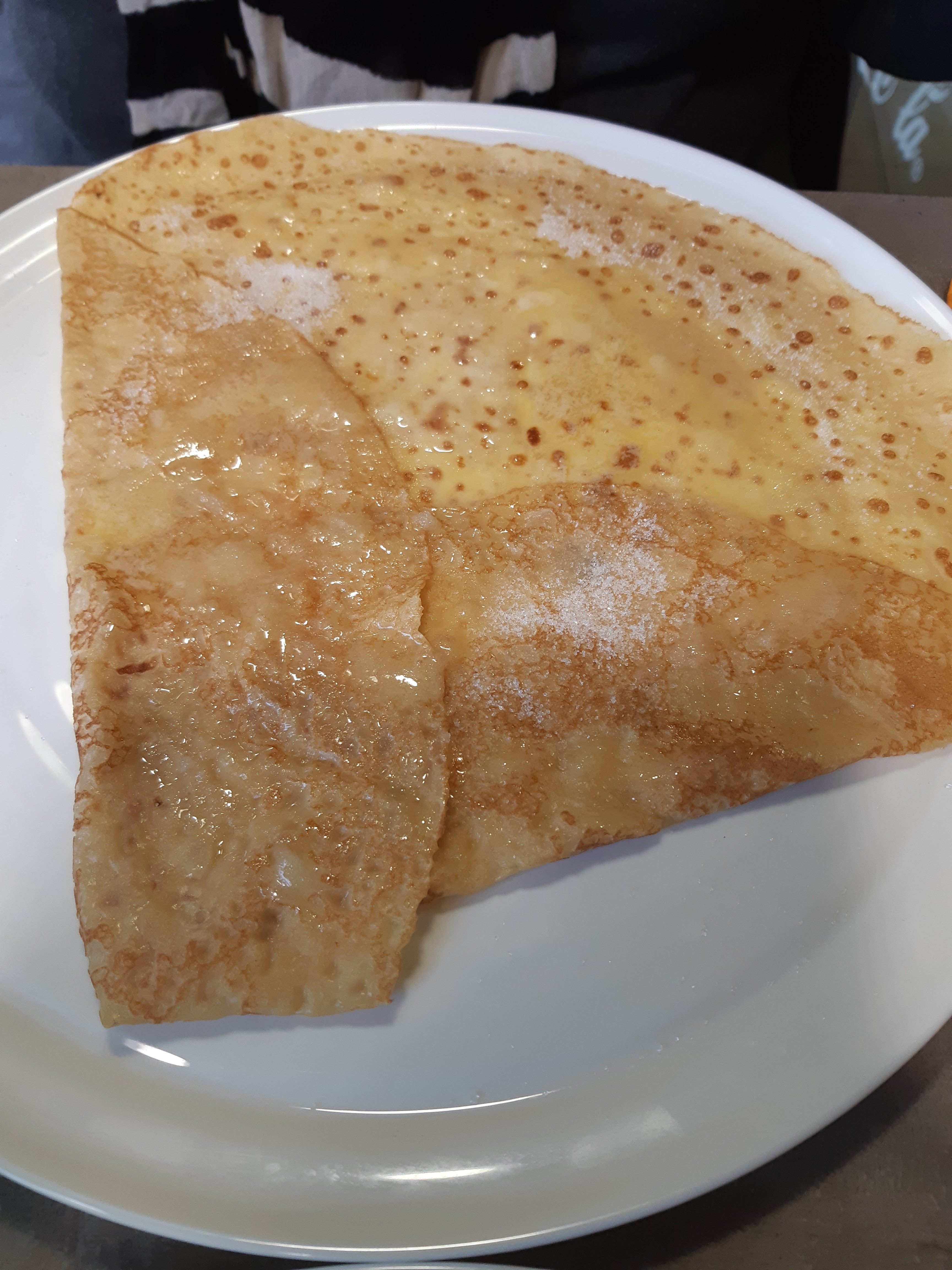 Serveuse aimable Par contre les crêpes de la biscotte Crêpes de la veille ? Obligé de remettre du sucre heureusement que j avais pris un café 🤭 Je recommande pas