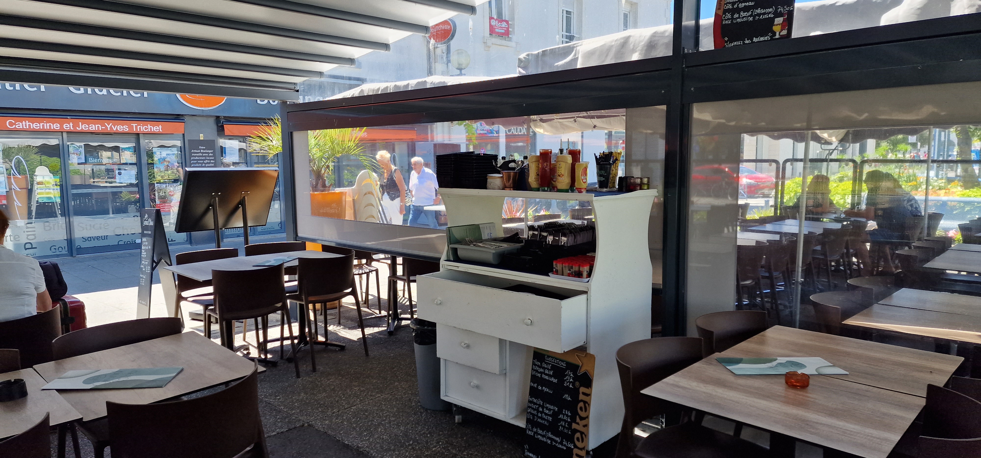 Passage fin juillet 2022 sur un midi, service très rapide, petite serveuse rousse très sympathique. Le cadre est vraiment agréable pour manger ou boire un verre. De plus, ils acceptent les chiens avec plaisir et n'hésite pas à leur apporter une gamelle d'eau. Je recommande !