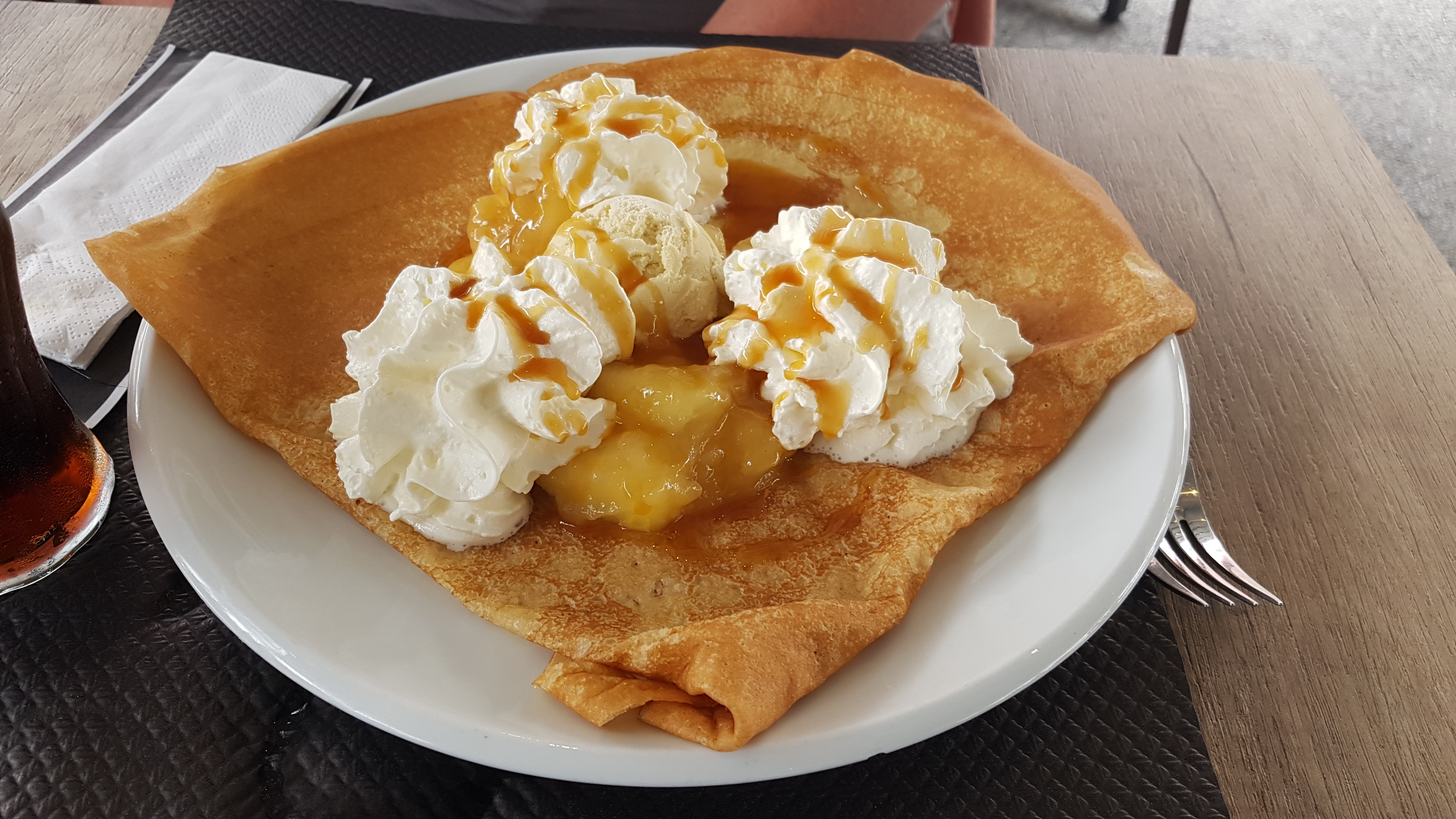 A partir de maintenant, je regarde les prix à l'extérieur des brasseries. 5, 20 la crepe Nutella...! Honteux! 4,90 celle à la confiture. C'est du délire!