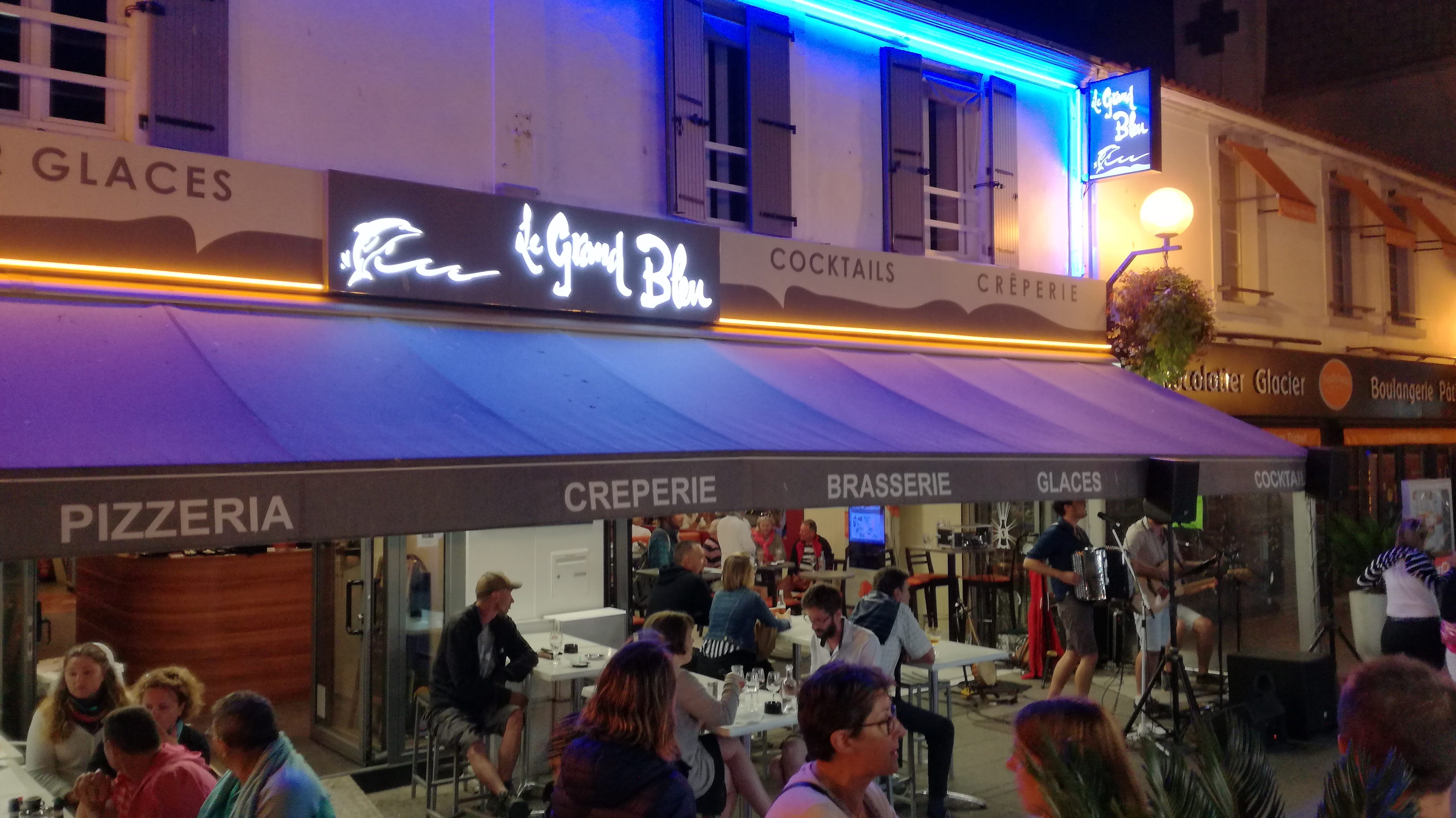 Le Grand Bleu, que dire….. c’est tout simplement DÉLICIEUX ! J’ai pus goûter une pizza, une galette, une crème brûlée et une glace ÉNORME ! 😋 Les employés et les patrons sont tops ! Un accueil chaleureux, agréable. Ils sont aux petits soins avec leurs clientèles. Je recommande fortement ce restaurant qui sera vous remplir le ventre sans problème. Merci encore ! Je reviendrais.