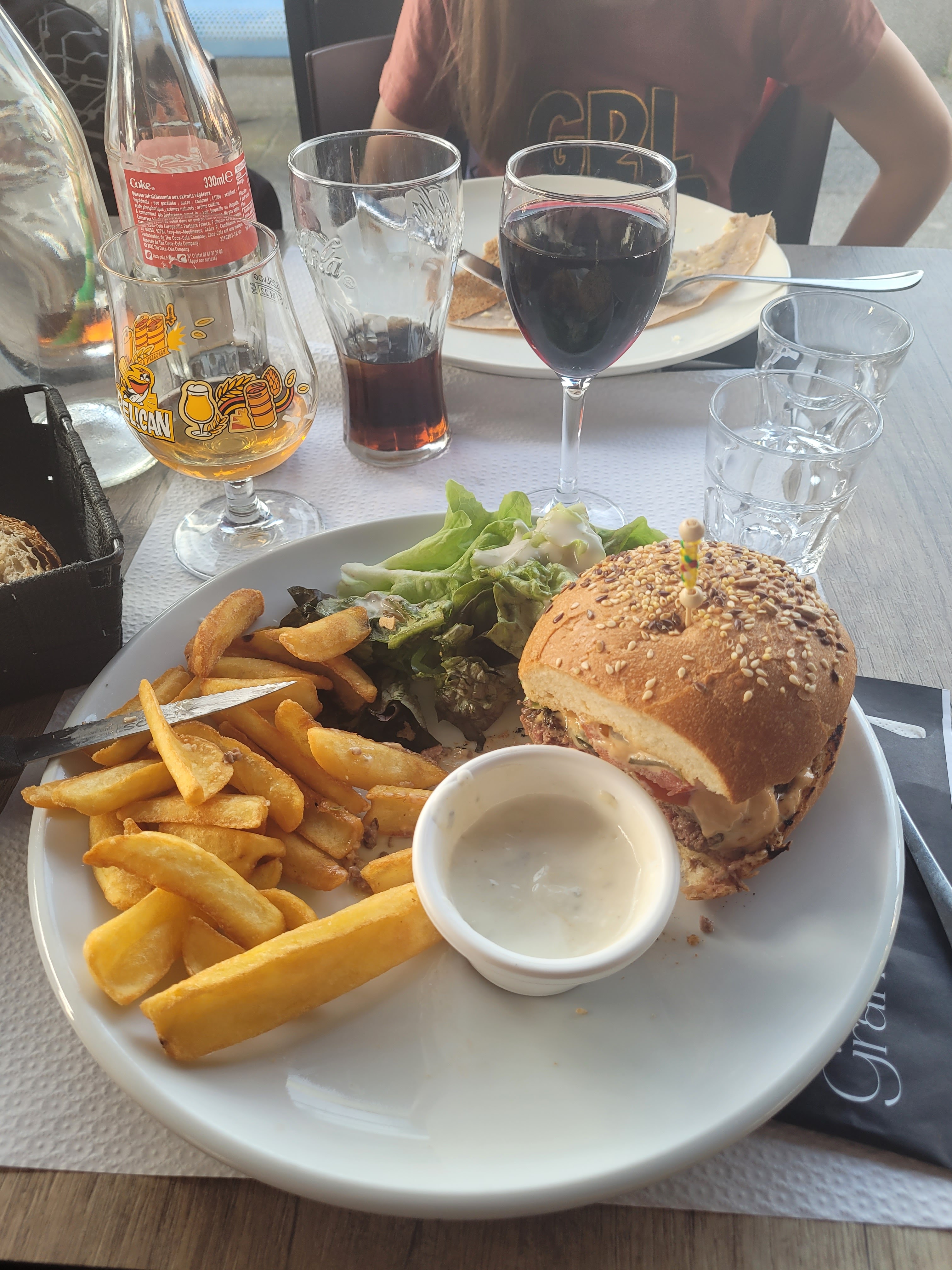 Que dire? Toilettes cassées, commande d une crêpe sucrée au miel...sans trace de miel. Heureusement une petite serveuse rousse nous ravit les yeux. PS: j' adore les gens dans les avis qui s enflamme sur la qualité des... burgers, des pizzas etc. Vive la France de 2022! Je ne recommande pas!