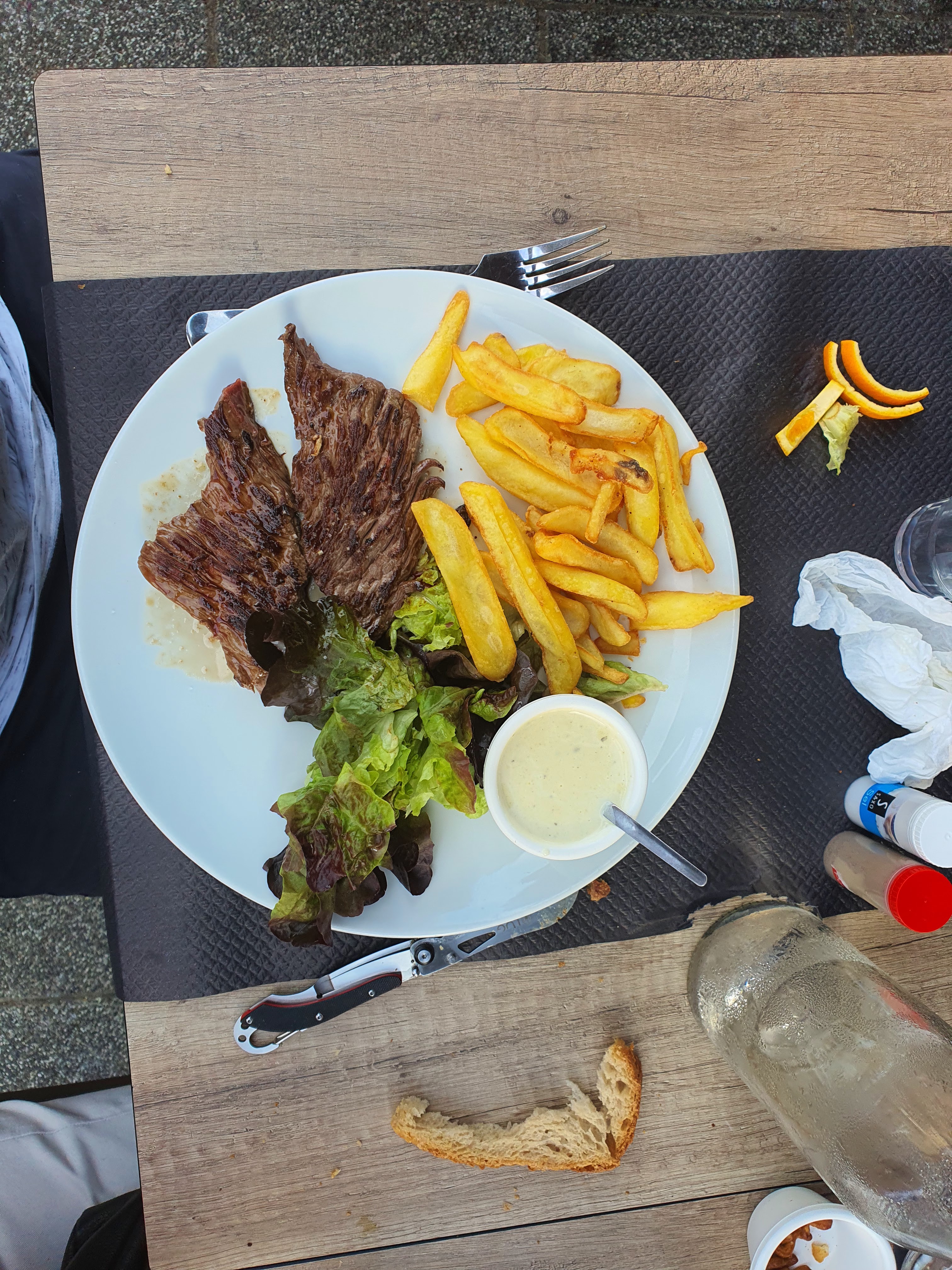 Dommage que les tables a l'extérieur sont trop collées des une et de autres. L'impression de parler aux voisins et de les inviter à la conversation ! Ce détail gâche le moment. Remplir pour remplir = attrape touriste = perte d'authenticité...! Concernant le repas, pas les meilleures moules frites du coin mais c'est mangeable et ça dépanne. Dessert trop sucrés et remplis de chantilly de bas de gamme. Sans plus...
