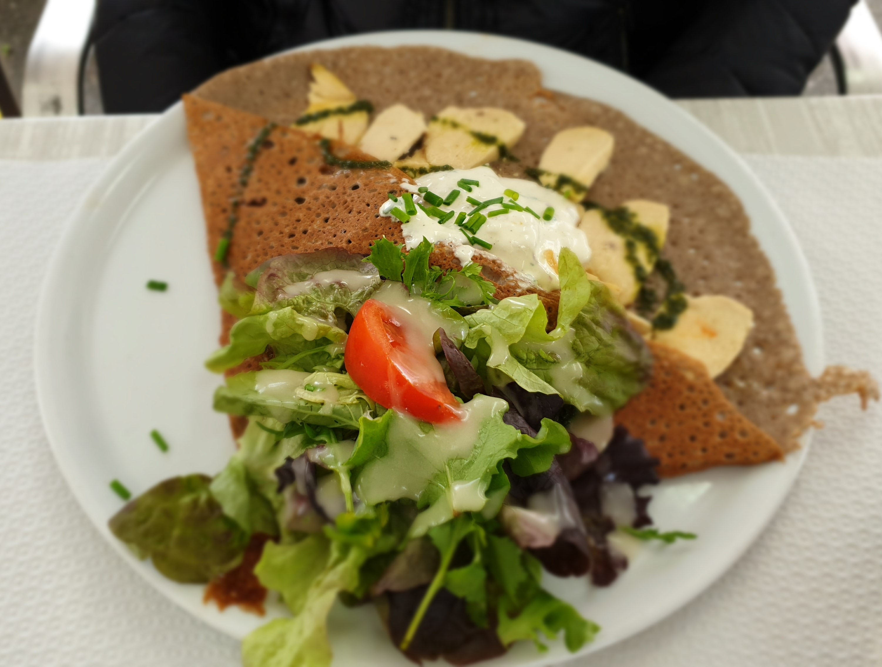 Service irréprochable, mais les crêpes ne sont pas super fournies. Une savoyarde ou j'ai dû manger une bonne partie de la galette pour trouver la garniture, une meringuée correcte mais avec meringues achetées... Nouvel essai quelques jours après, service toujours irréprochable, mais une complète Vendéenne avec une moitié de (très petite) pomme de terre, un coulis de tomates d'une cuillère à café... La pommière en dessert était bien fournie par contre.