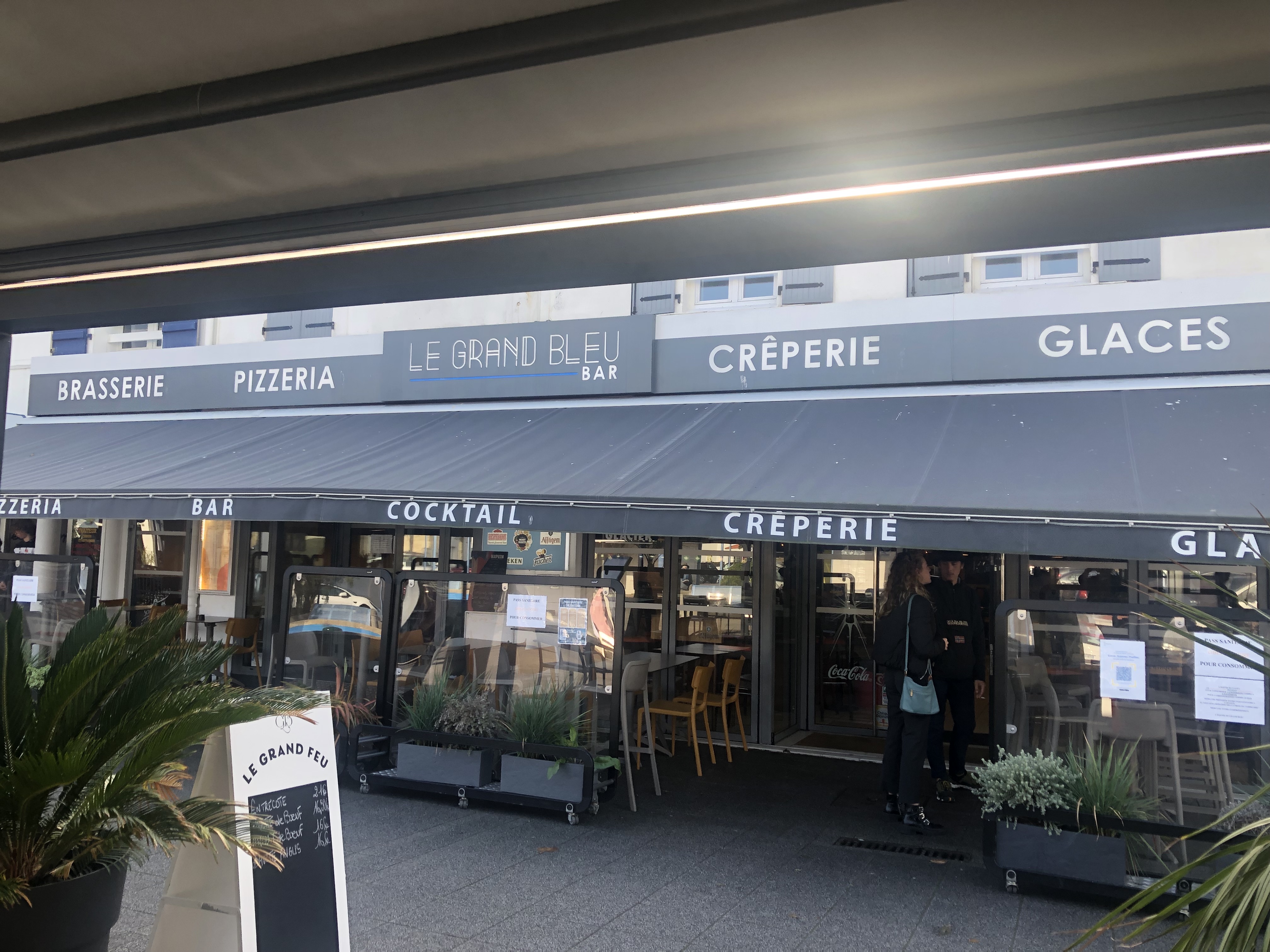 Nous venons chaque été au Grand bleu. La cuisine est bonne avec des plats du jour de la mer. La carte est conséquente. Bémol sur les cocktails. Le service est toujours top malgré une charge de travail importante bravo. La terrasse est très agréable à part les mouettes qui rodent !! et les jeux enfants à proximité en font un lieu sympa en famille.