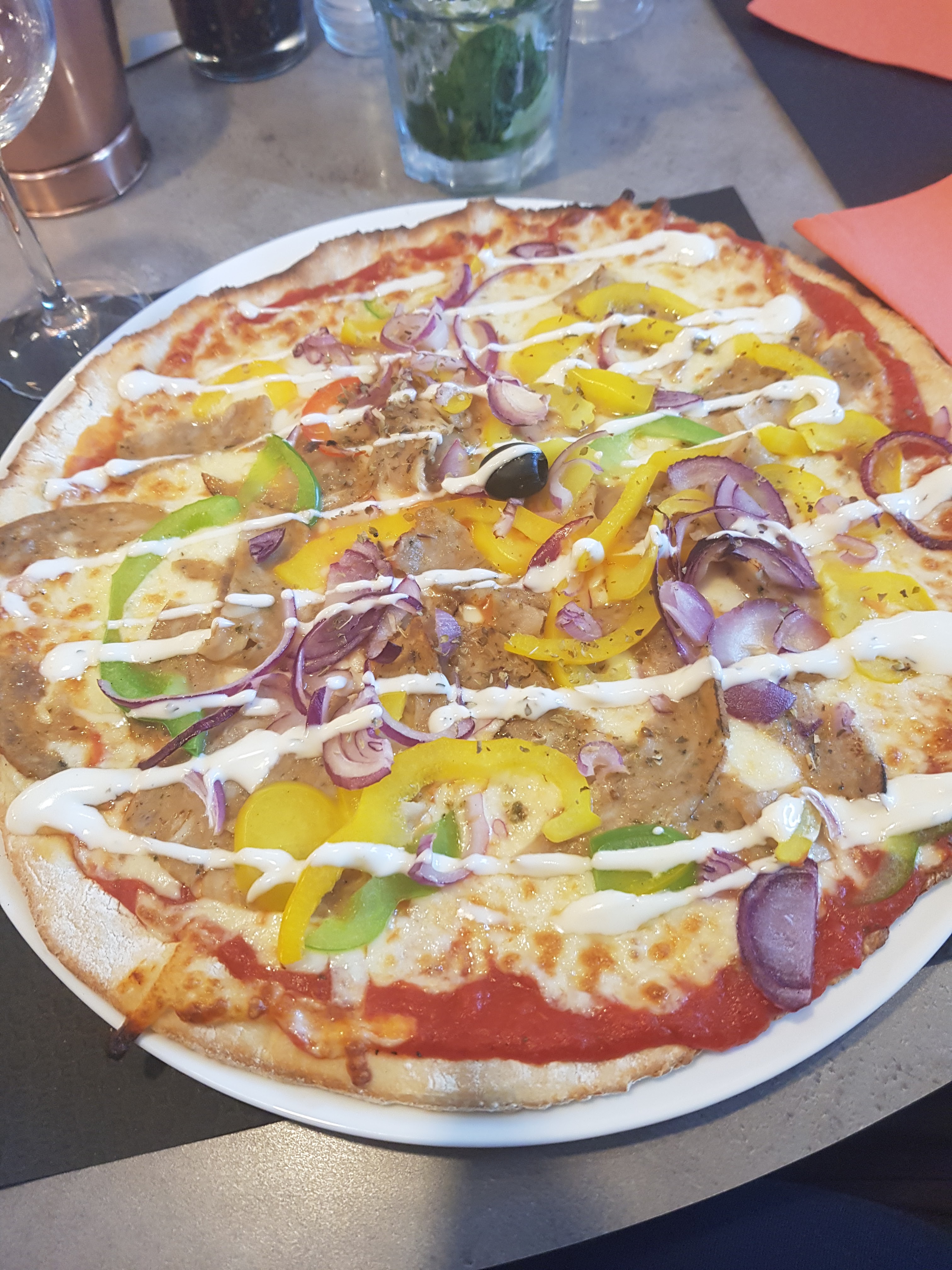 Déçue par la pizzananas ! la grosse quantité de sauce au curry versée dessus n est pas appétissante je n ai pas aimé, 5 petits morceaux d ananas dessus, poulet insipide. Je n ai rien mangé, la serveuse me propose du coup en débarrassant nos assiettes une autre une pizza à emporter, étant donnéque je n avais rien mangé, que je refuse gentiment et demande une assiette de frites qu on me facture 5 € ! Sinon personnel souriant et agréable.