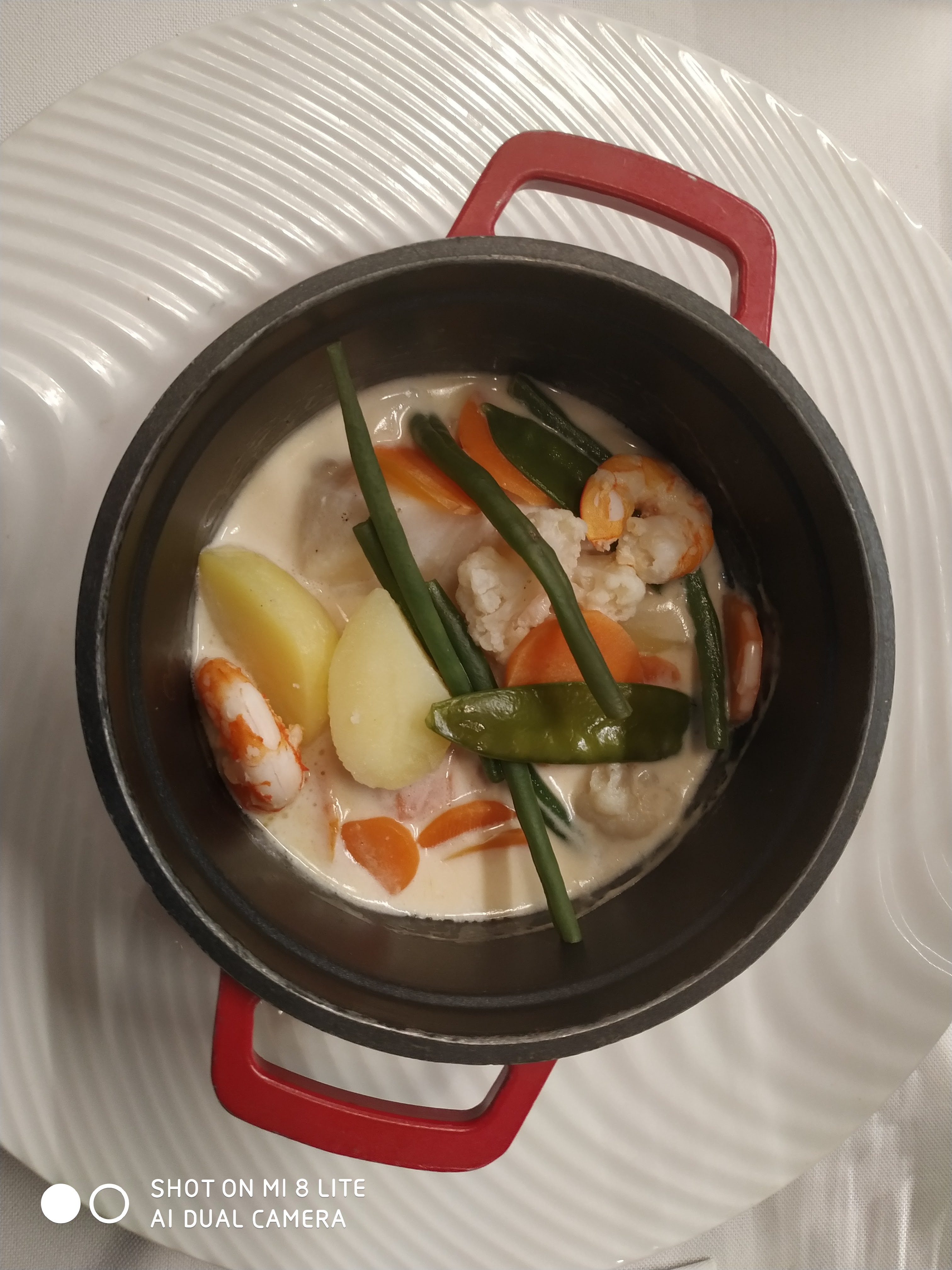 Nous avons été installés à une table ronde, à 4. Le repas était très bon. Nous avons particulièrement apprécié la soupe et la marmite de poisson, les brochettes de Saint-Jacques, le risotto de gambas, l'œuf poché et tous les desserts. Nous reviendrons certainement!
