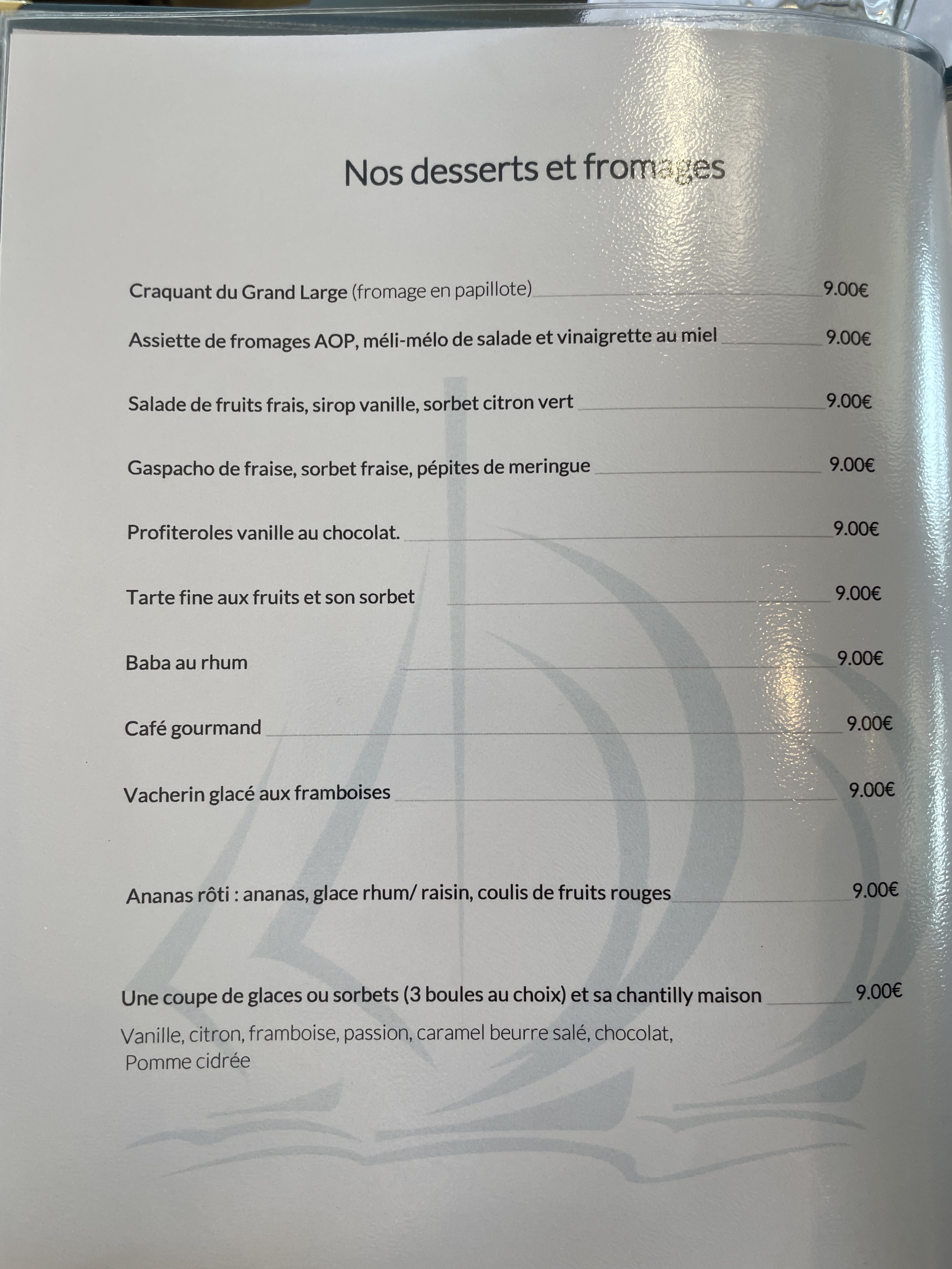 Super service, plats et vue panoramique Equipe au petit soin Patron super gentil avec une délicate attention en nous offrant le champagne 😁 Merci Le Grand Large, à bientôt 😎🙋♀️
