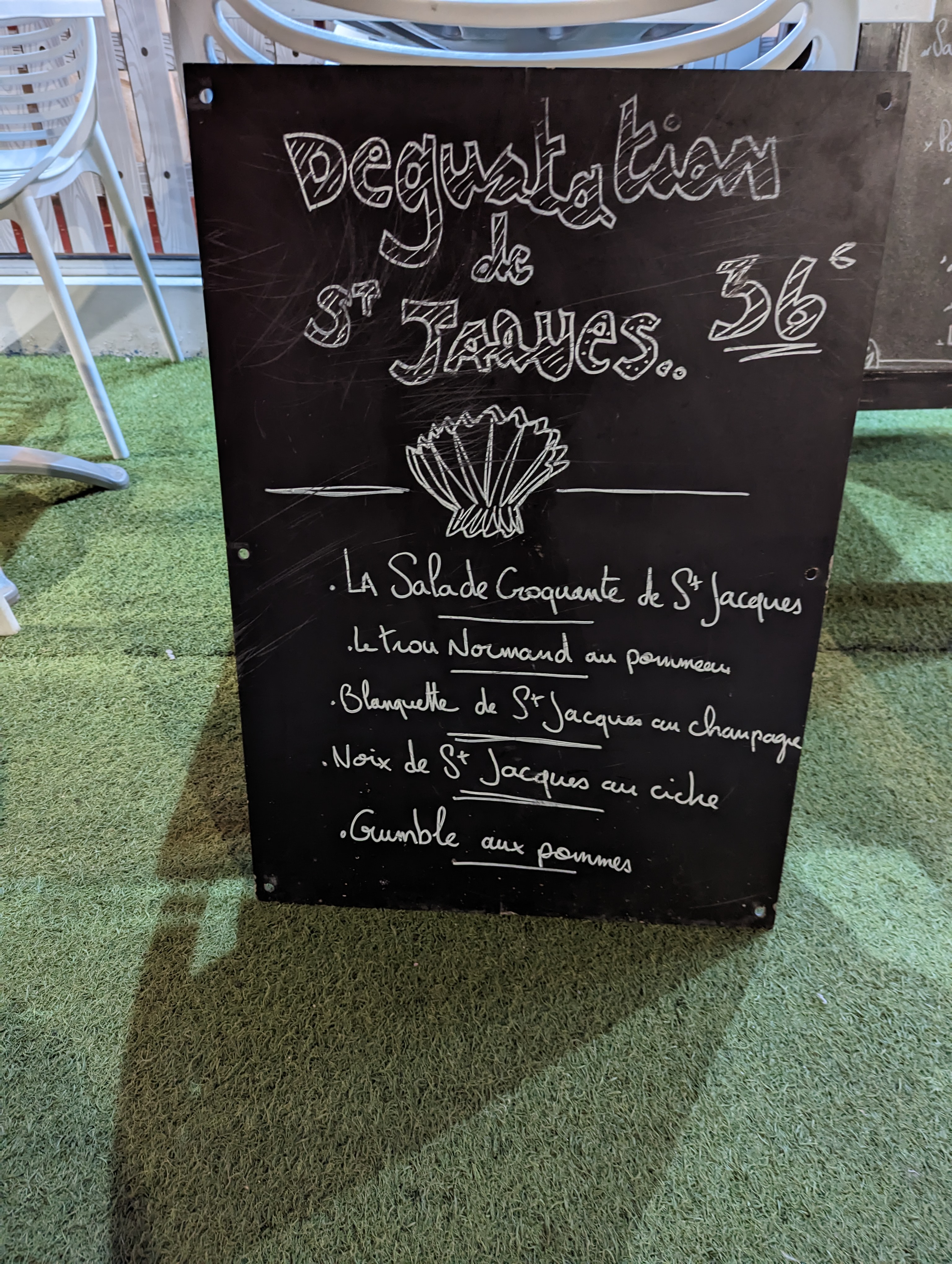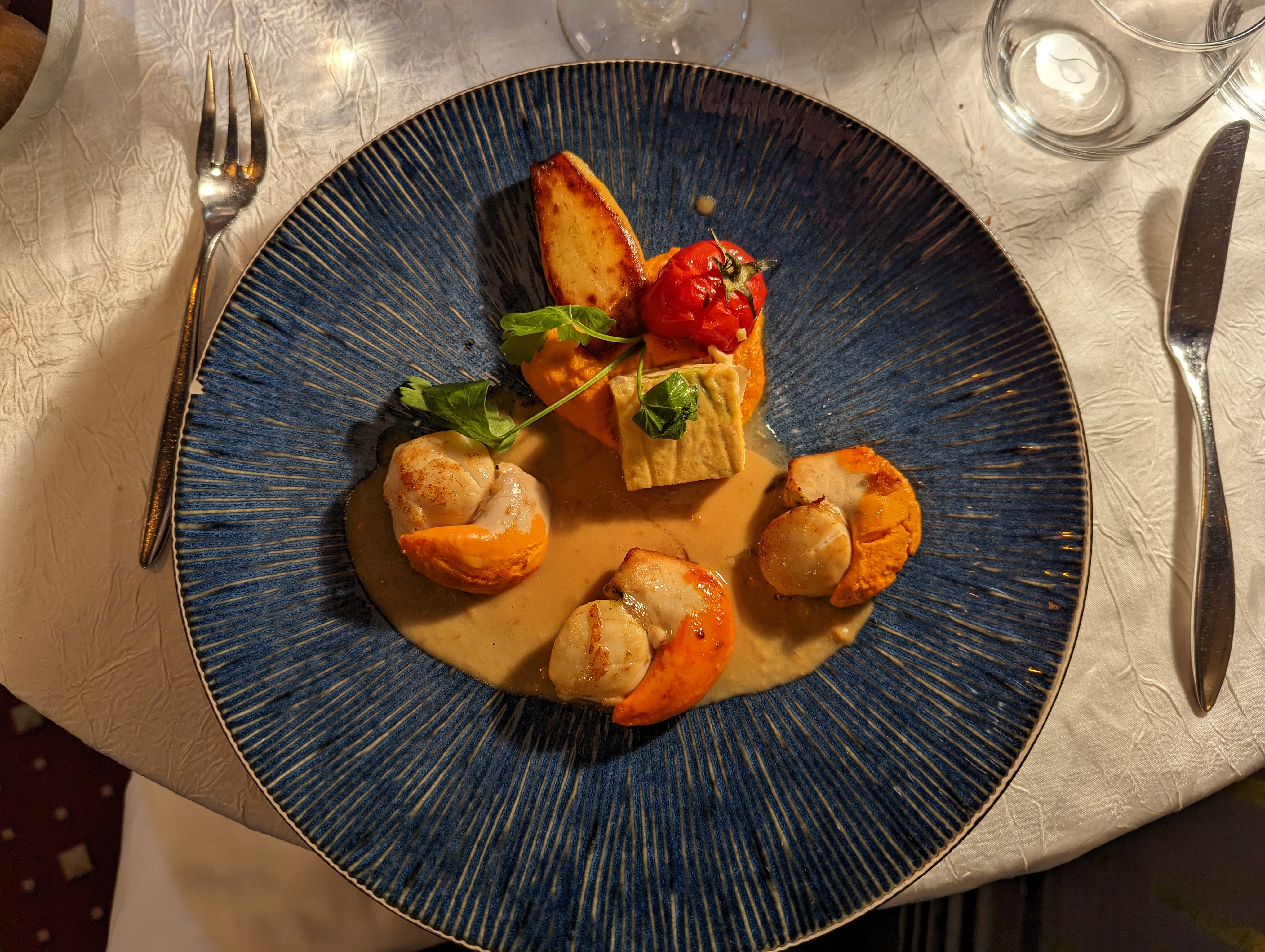 menu coquilles Saint Jacques 36 euros excellent fraîcheur et bien cuisiné