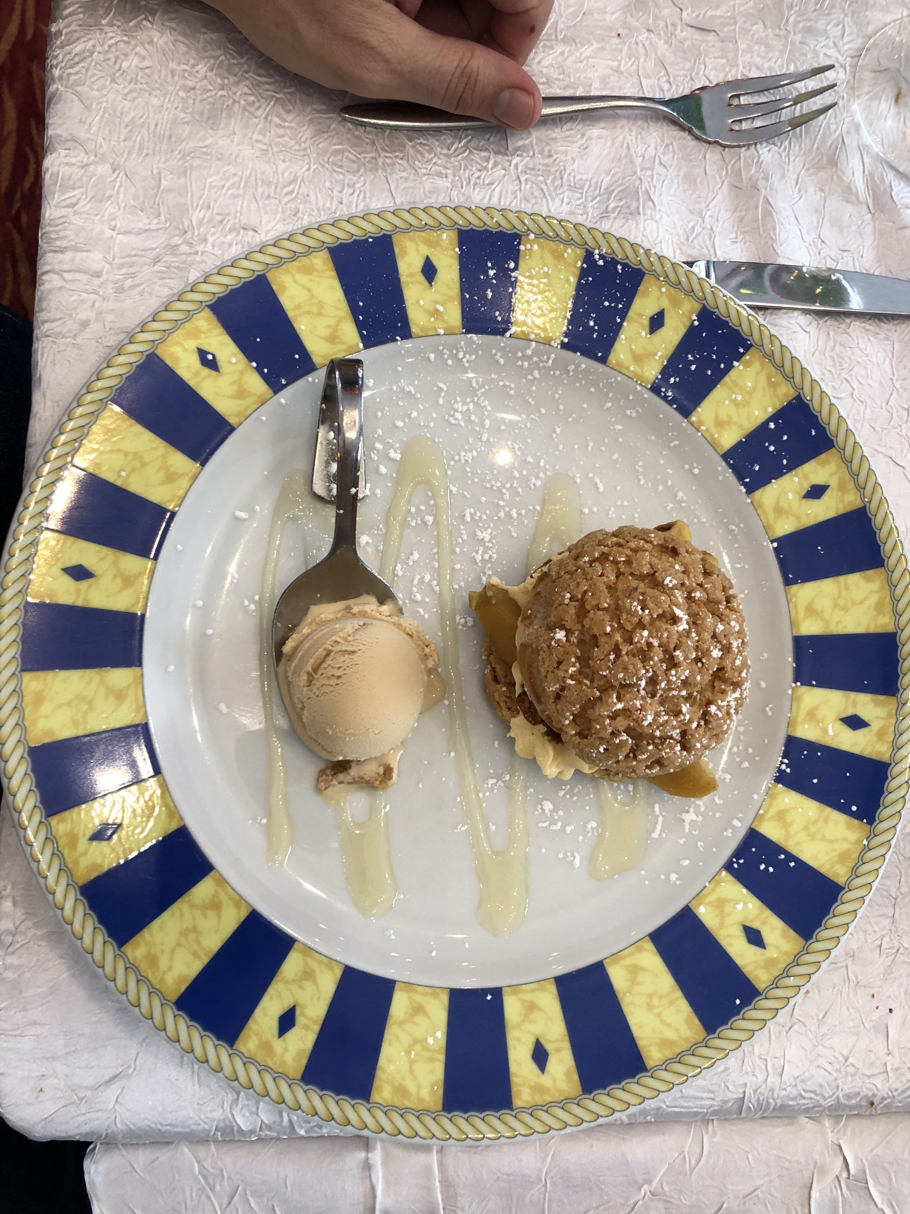 Menu du marché rapport qualité prix imbattable le Paris Brest revisité avec ses pommes flambées au calvados 1 délice pour les papilles amabilité et adaptabilité du personnel décoration top propreté des lieux